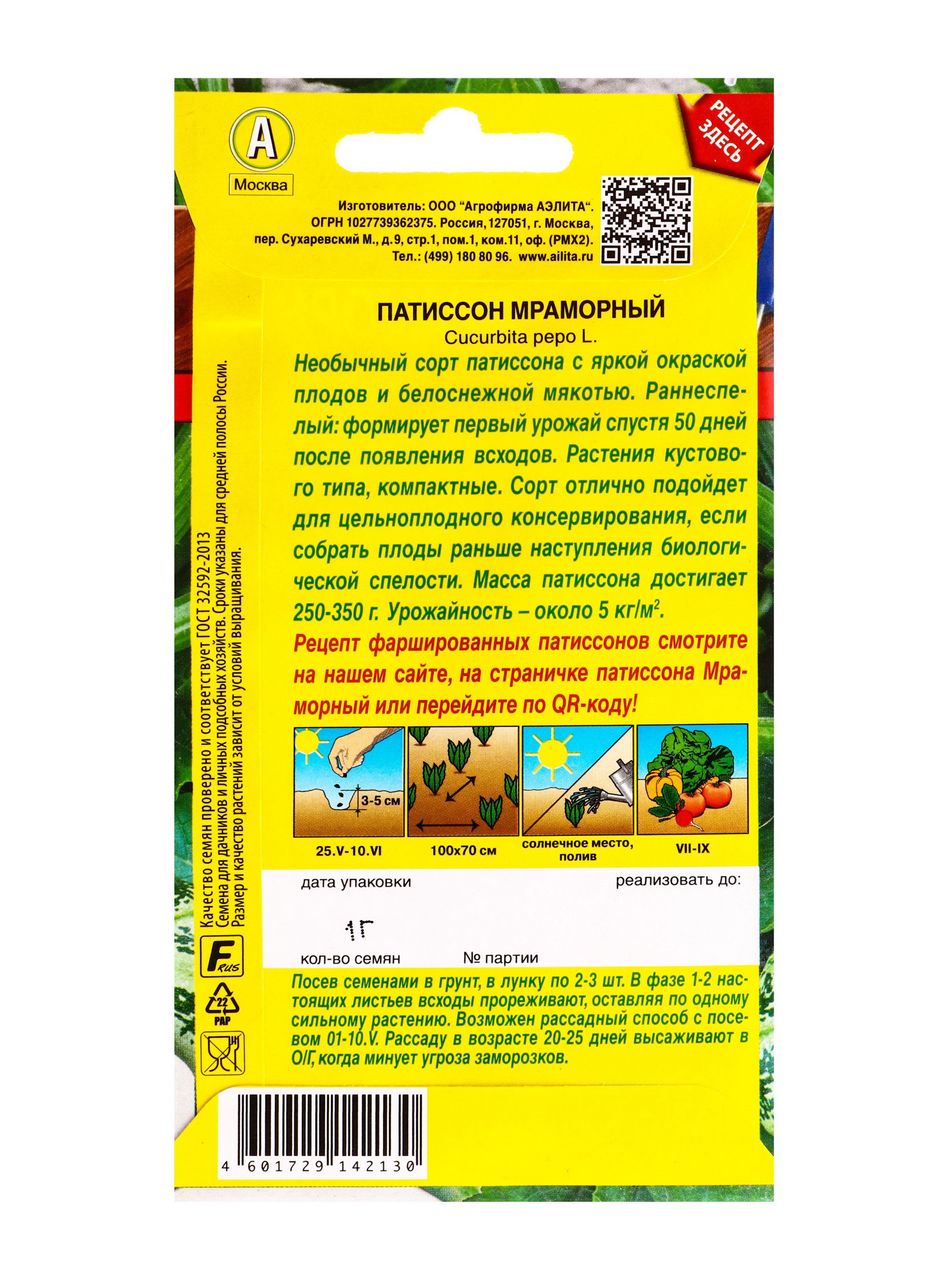 Семена Патиссон Мраморный Блюда стран мира, Ц/П,1 г, Агрофирма АЭЛИТА, Россия