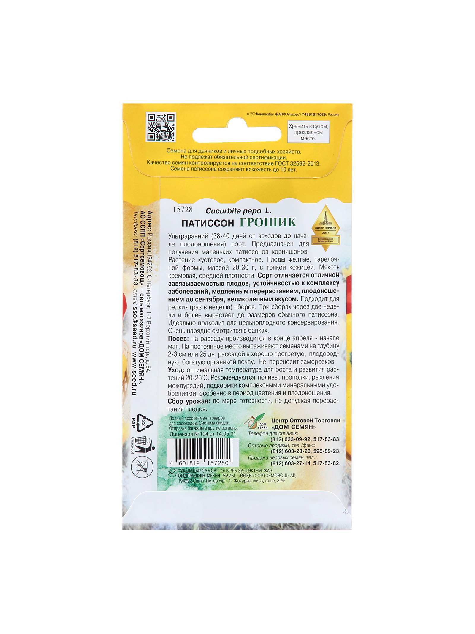 Набор семян Патиссон "Грошик", 5 шт., 9x17x1 см., Мой выбор, Россия