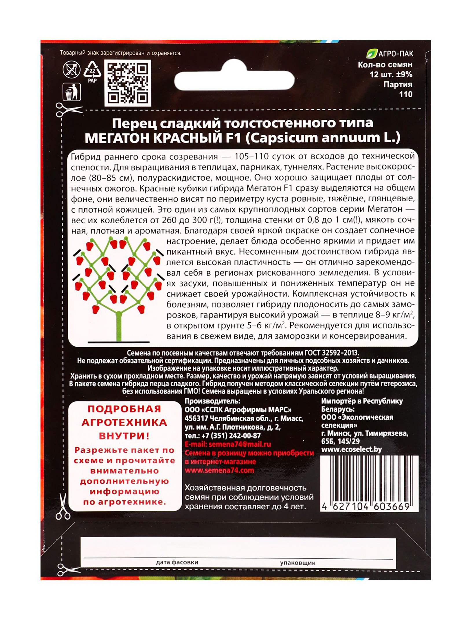 Семена перец сладкий "Мегатон Красный F1", 12 шт., Уральский Дачник, Россия