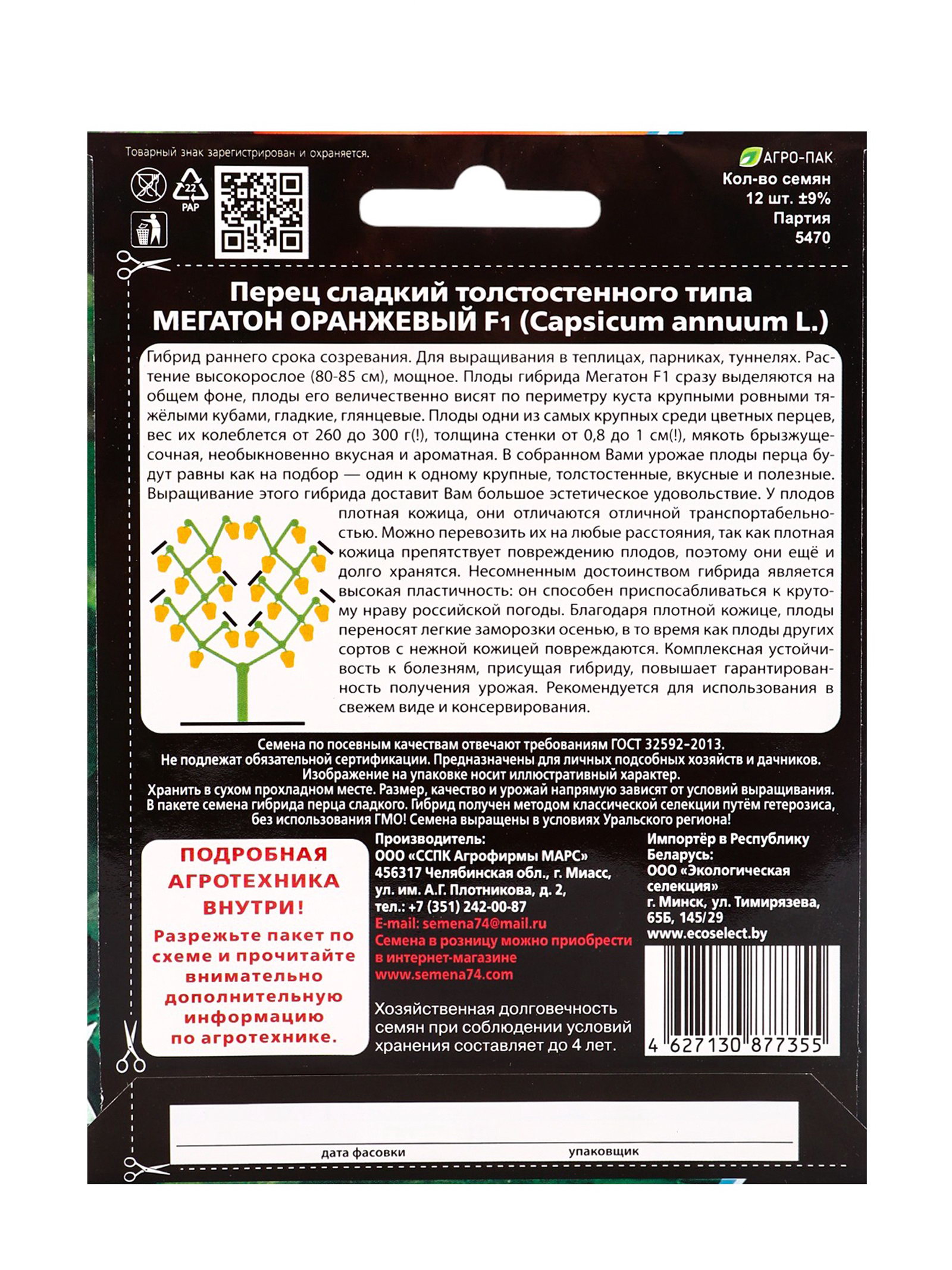 Семена Перец сладкий "Мегатон оранжевый", F1.12 шт., Уральский Дачник, Россия