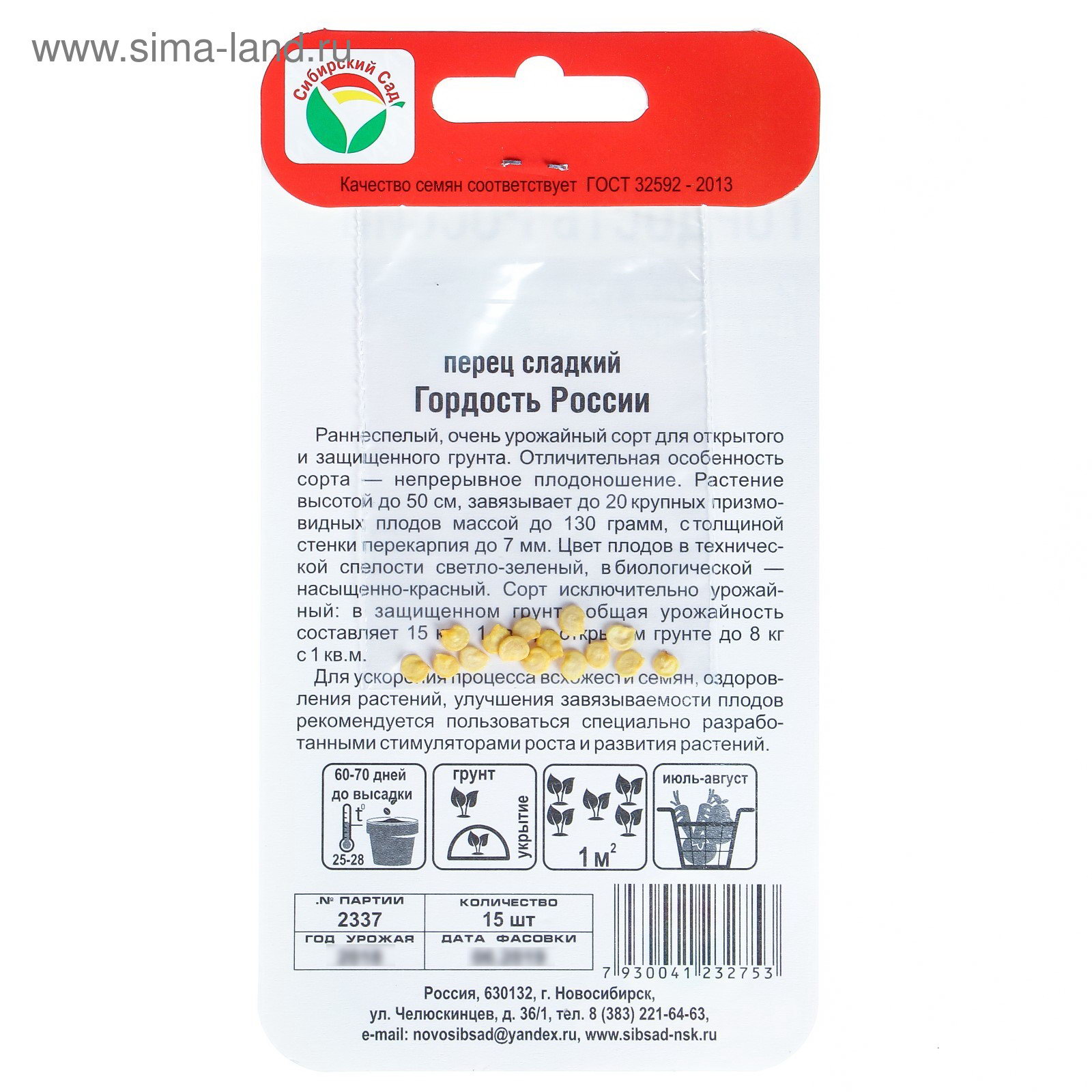 Семена Перец сладкий "Гордость России", 15 шт, Сибирский сад, Россия