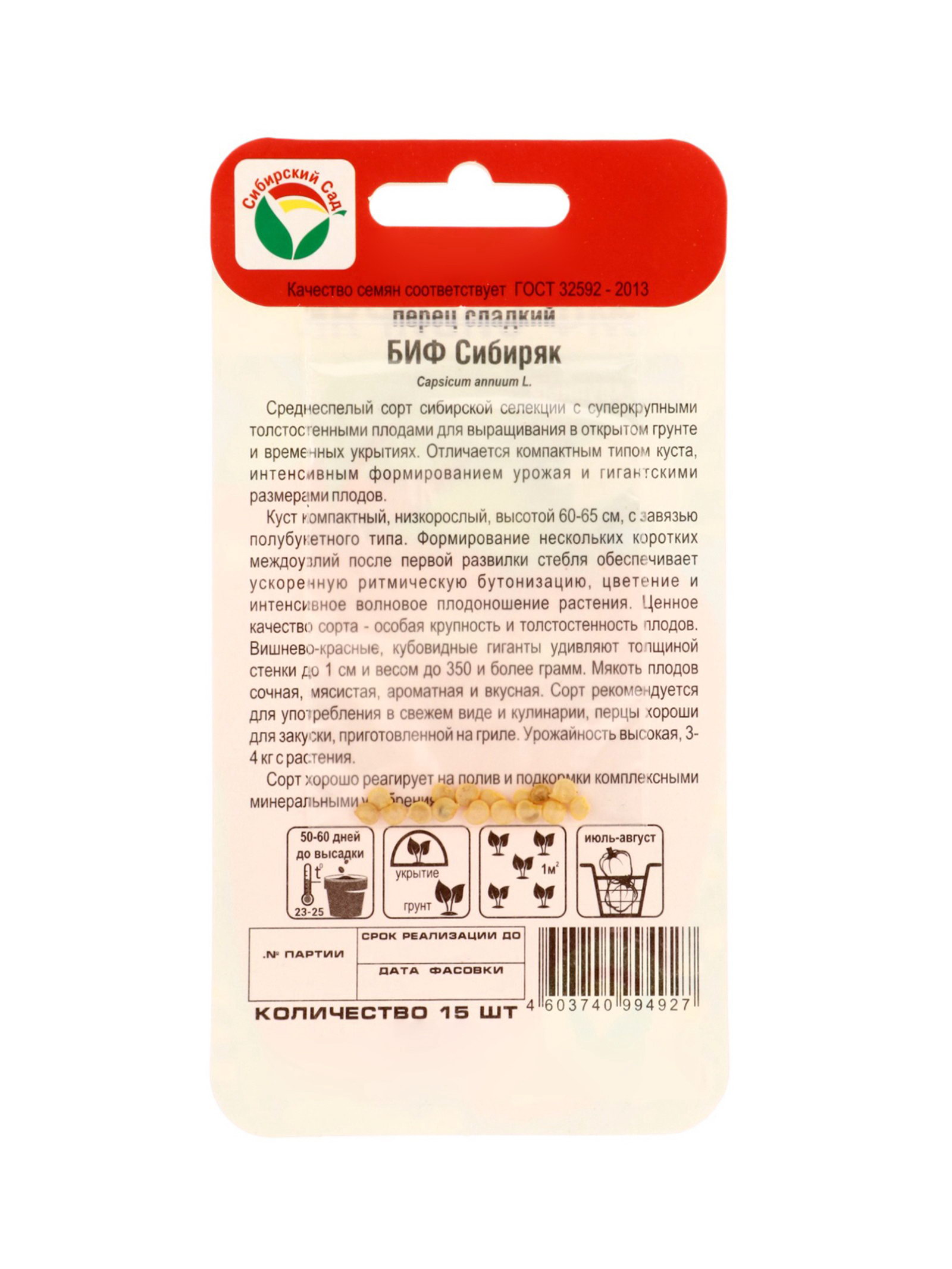 Семена Перец сладкий "БИФ-Сибиряк", 15 шт, Сибирский сад, Россия