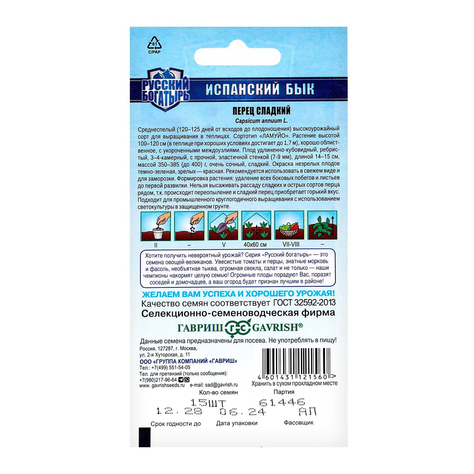 Семена Перец сладкий "Испанский бык", 15 шт, Гавриш, Россия