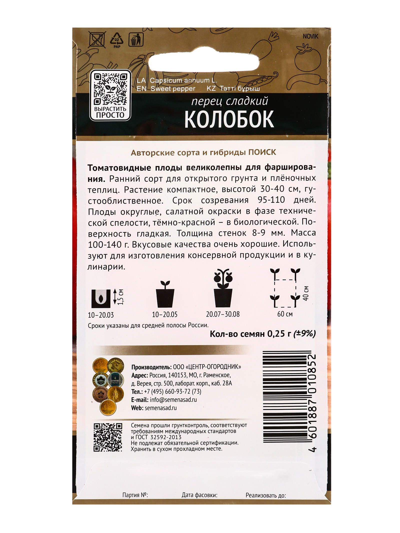 Семена Перец сладкий "Колобок", 0.25 г, ПОИСК, Китай