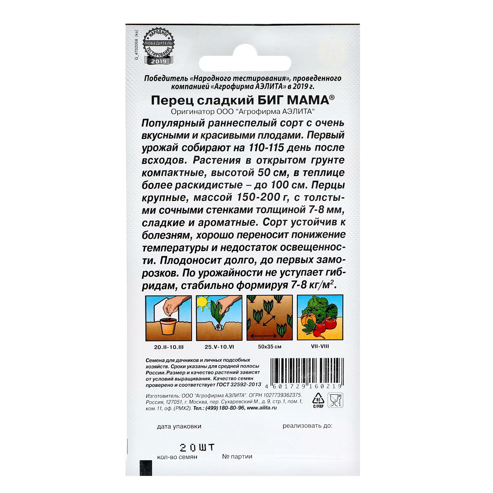 Семена Перец сладкий "Биг мама", ц/п, 20 шт, Аэлита Агро, Нидерланды