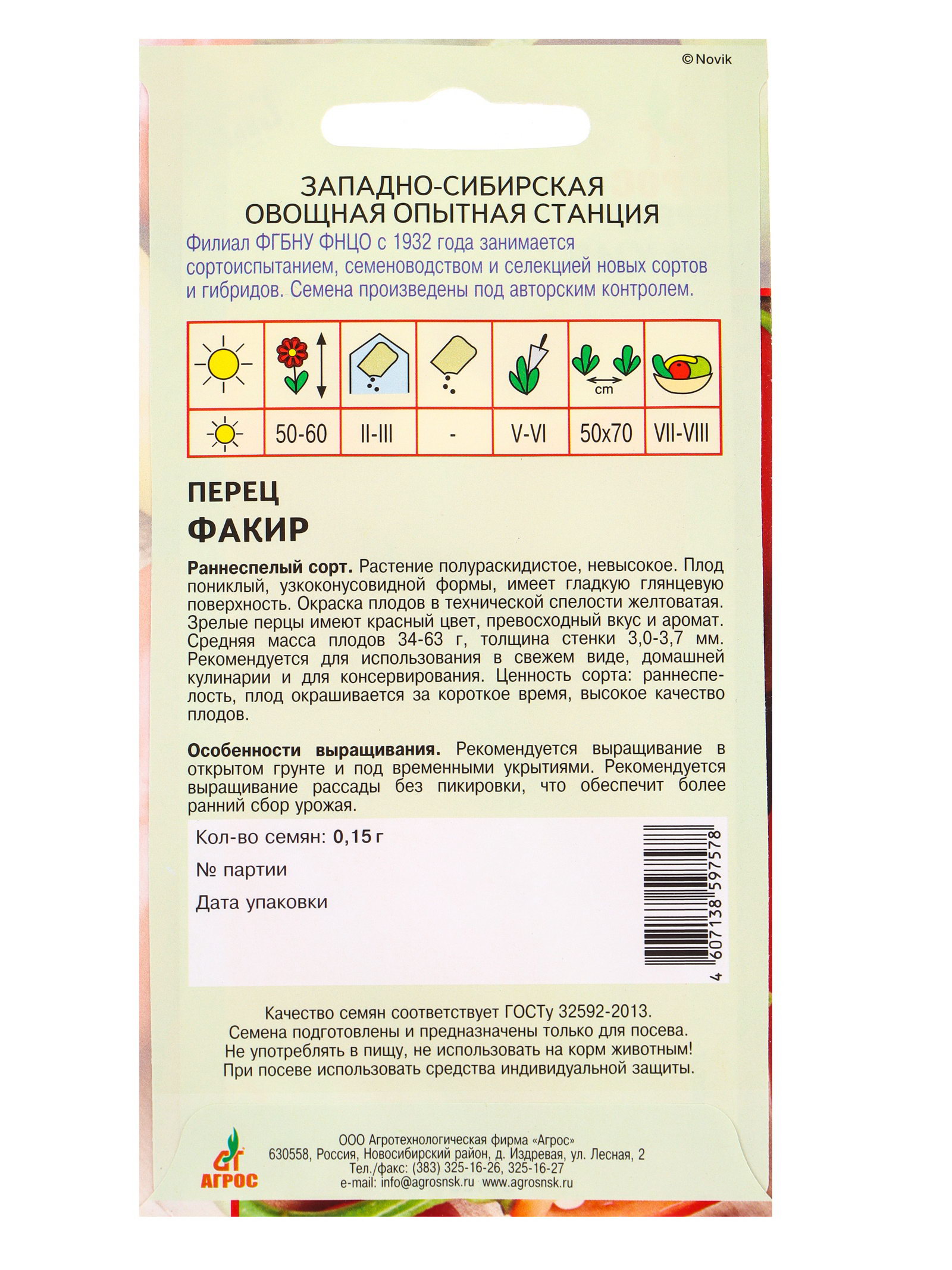 Семена Перец "Факир"0.15 г, Агросс, Россия