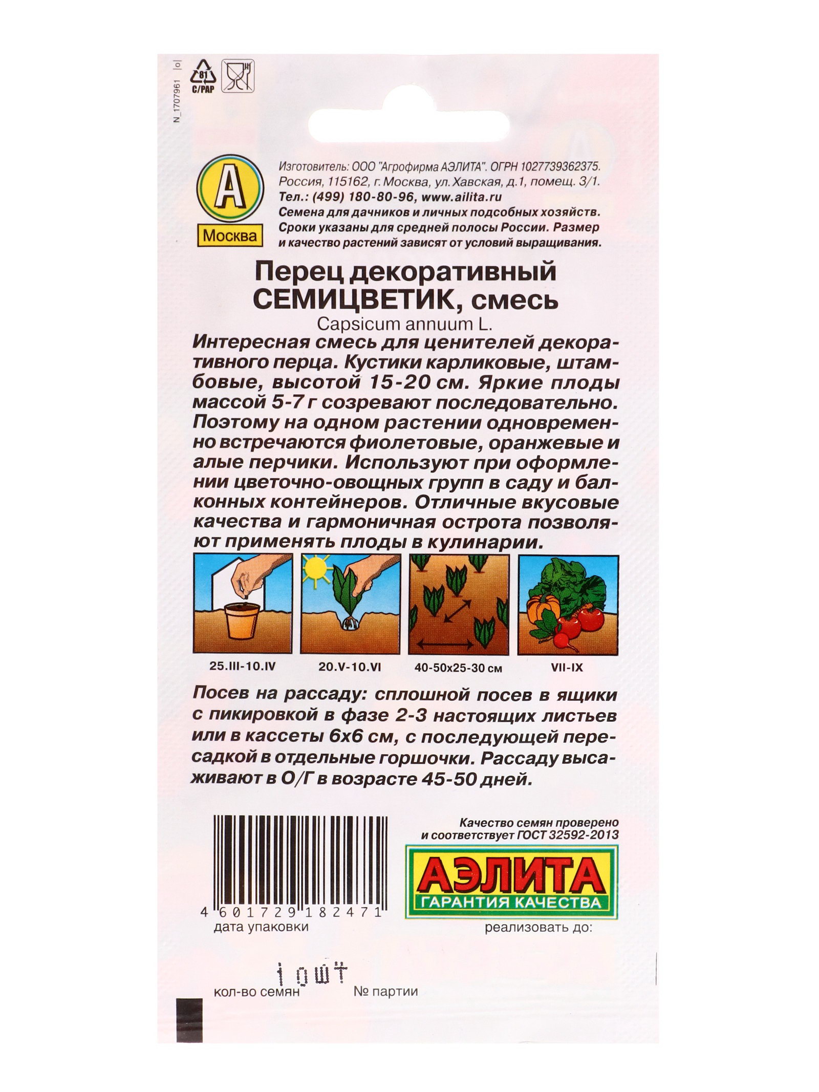 Семена Перец декоративный Семицветик, смесь, Ц/П,10 шт., Агрофирма АЭЛИТА, Россия