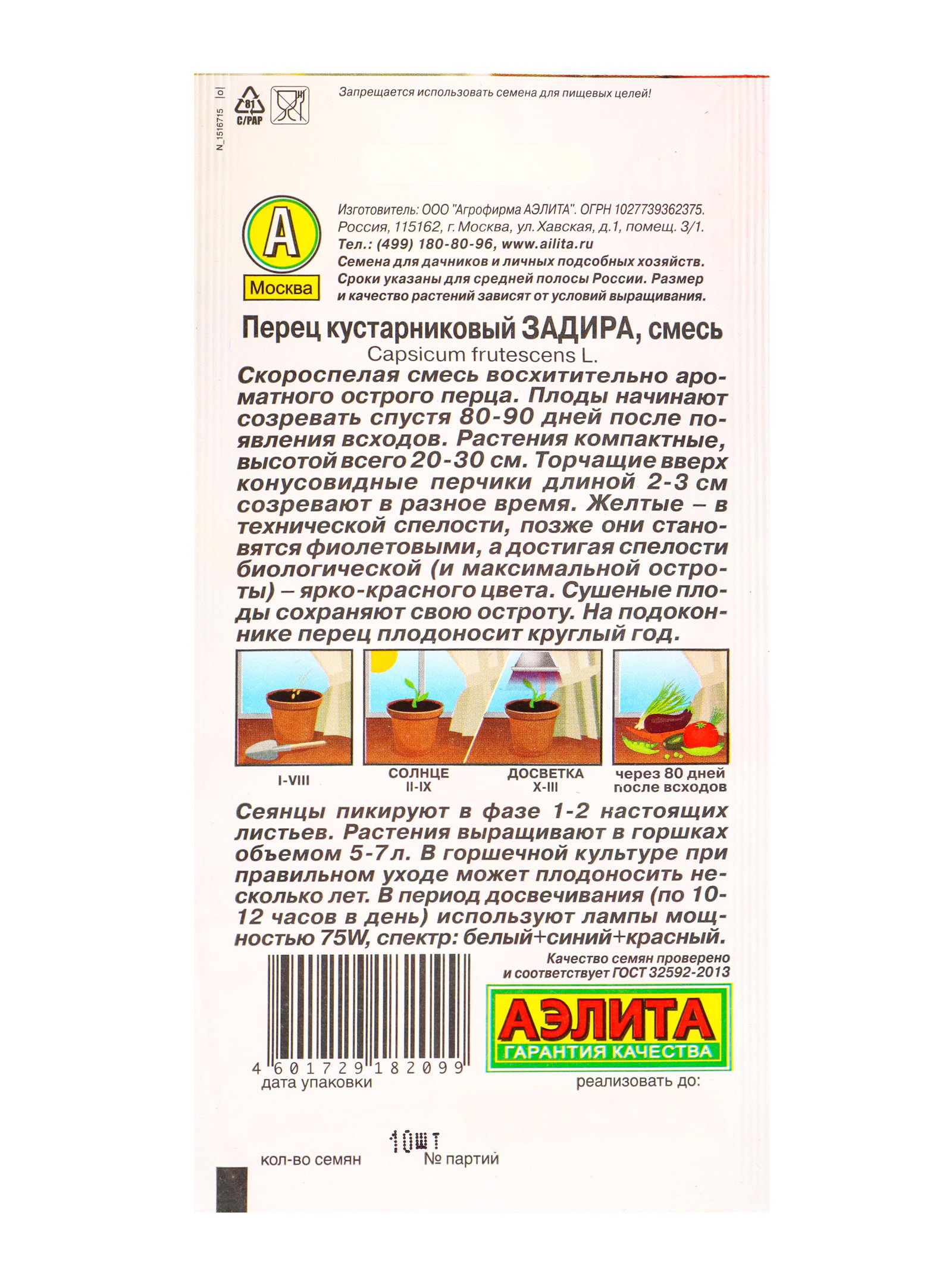 Семена Перец кустарниковый Задира, смесь Урожай дома, Ц/П,10 шт., Агрофирма АЭЛИТА, Россия