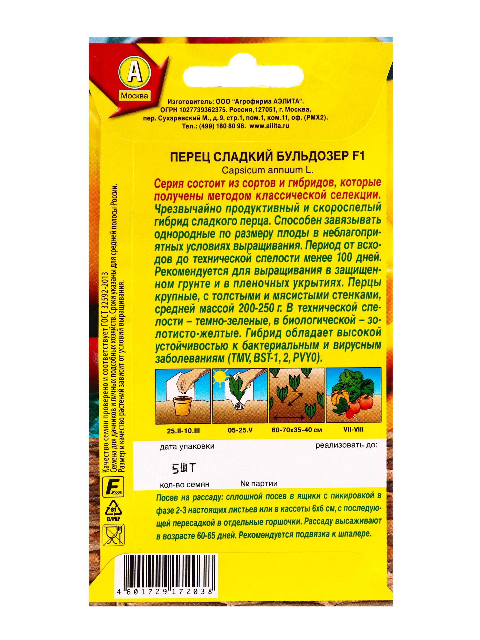 Семена Перец сладкий Бульдозер F1 Профи-Аэлита, Ц/П,5 шт., Агрофирма АЭЛИТА, Россия