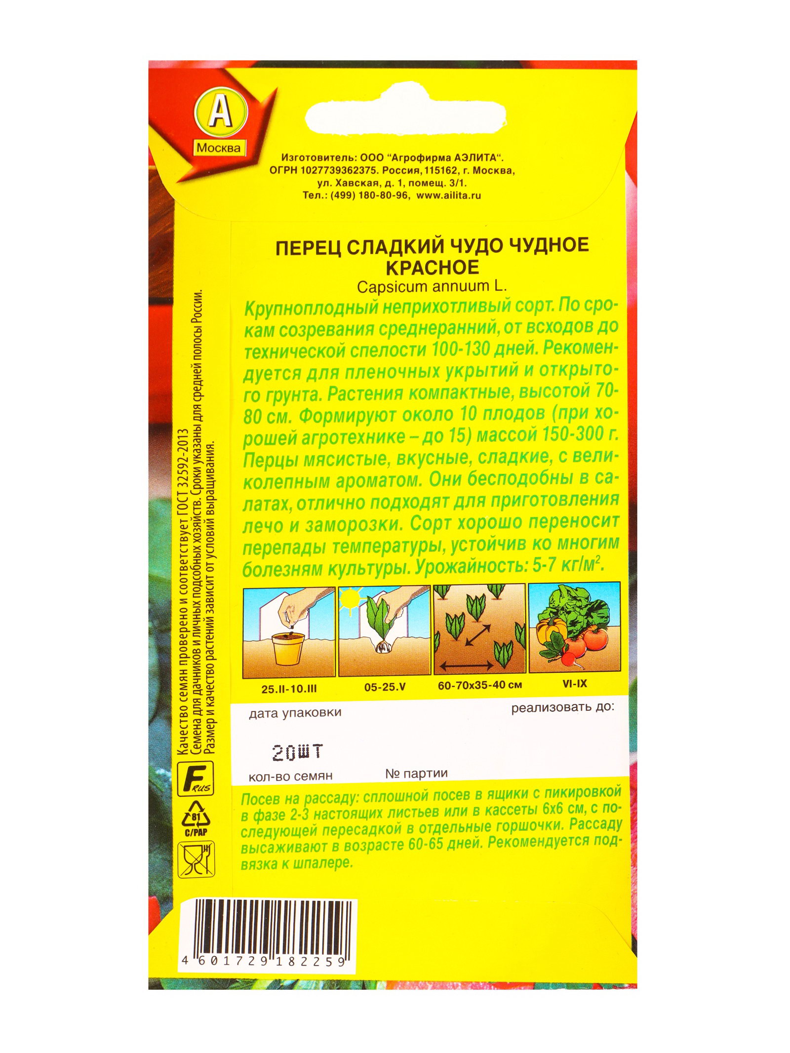 Семена Перец сладкий Чудо чудное красное, Ц/П,20 шт., Агрофирма АЭЛИТА, Россия