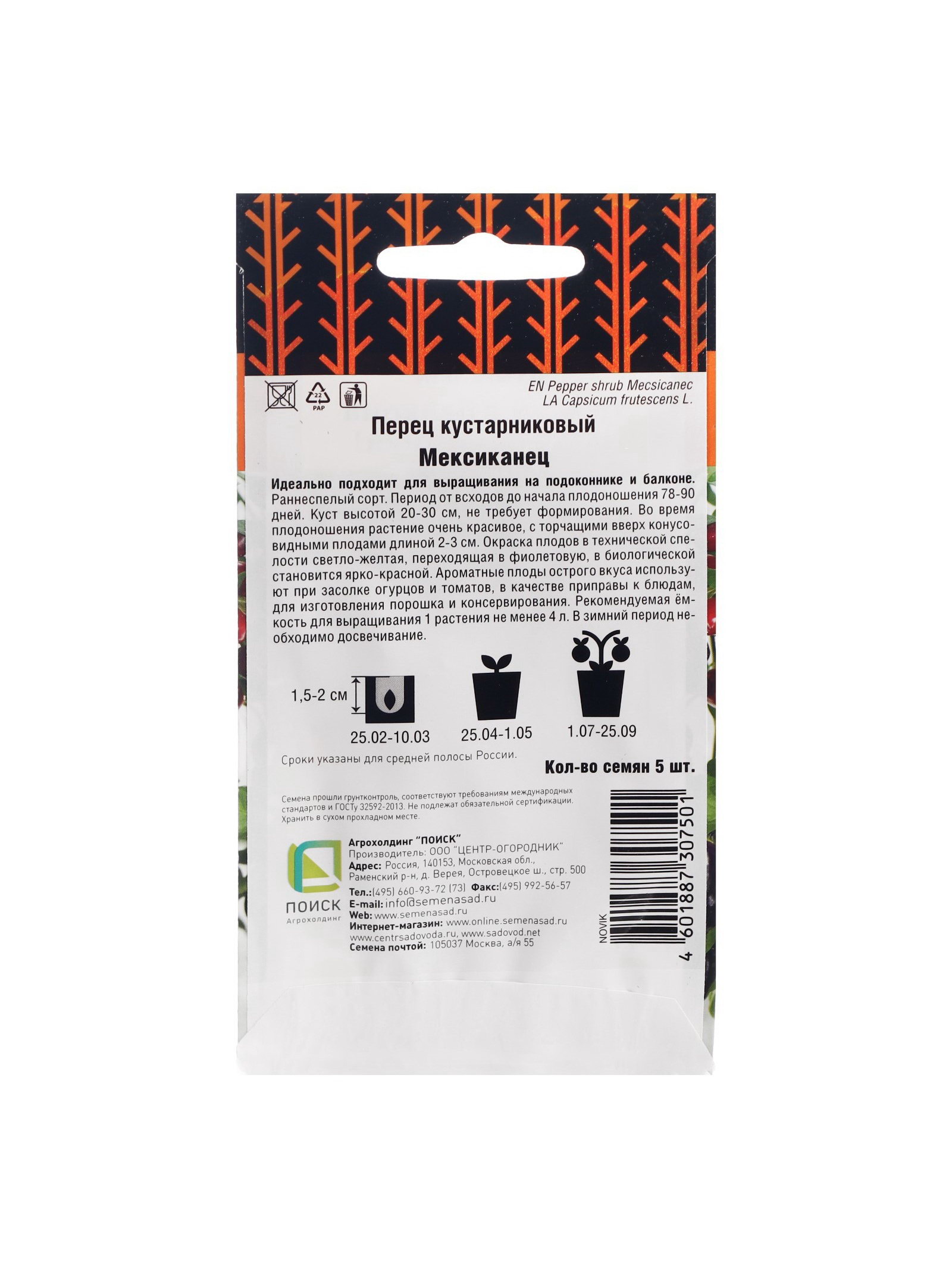 Набор семян Перец кустарниковый "Мексиканец", 5 шт., 9x17x1 см., Мой выбор, Россия