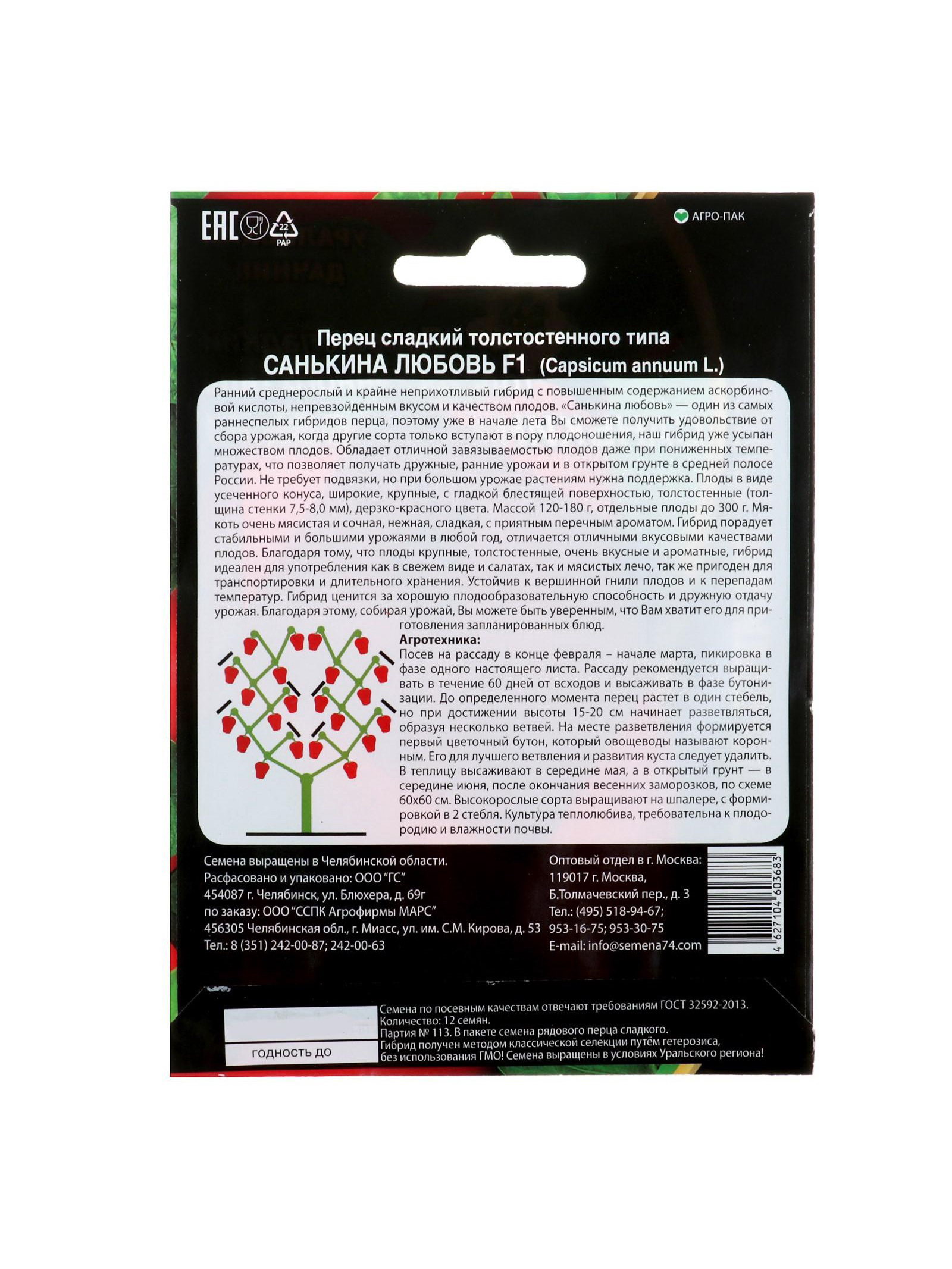 Набор семян Перец сладкий "Санькина любовь" F1, 4 шт., 9x17x1 см., Мой выбор, Россия