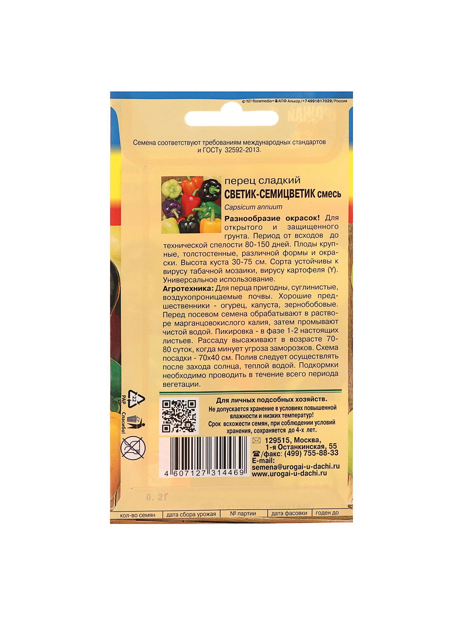 Набор семян Перец сладкий "СВЕТИК-СЕМИЦВЕТИК", смесь, 5 шт., 9x17x1 см., Мой выбор, Россия
