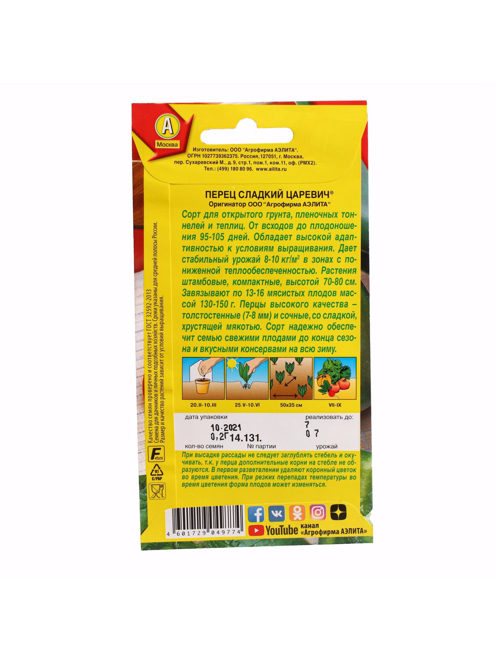 Набор семян Перец сладкий "Царевич", 5 шт., 9x17x1 см., Мой выбор, Россия