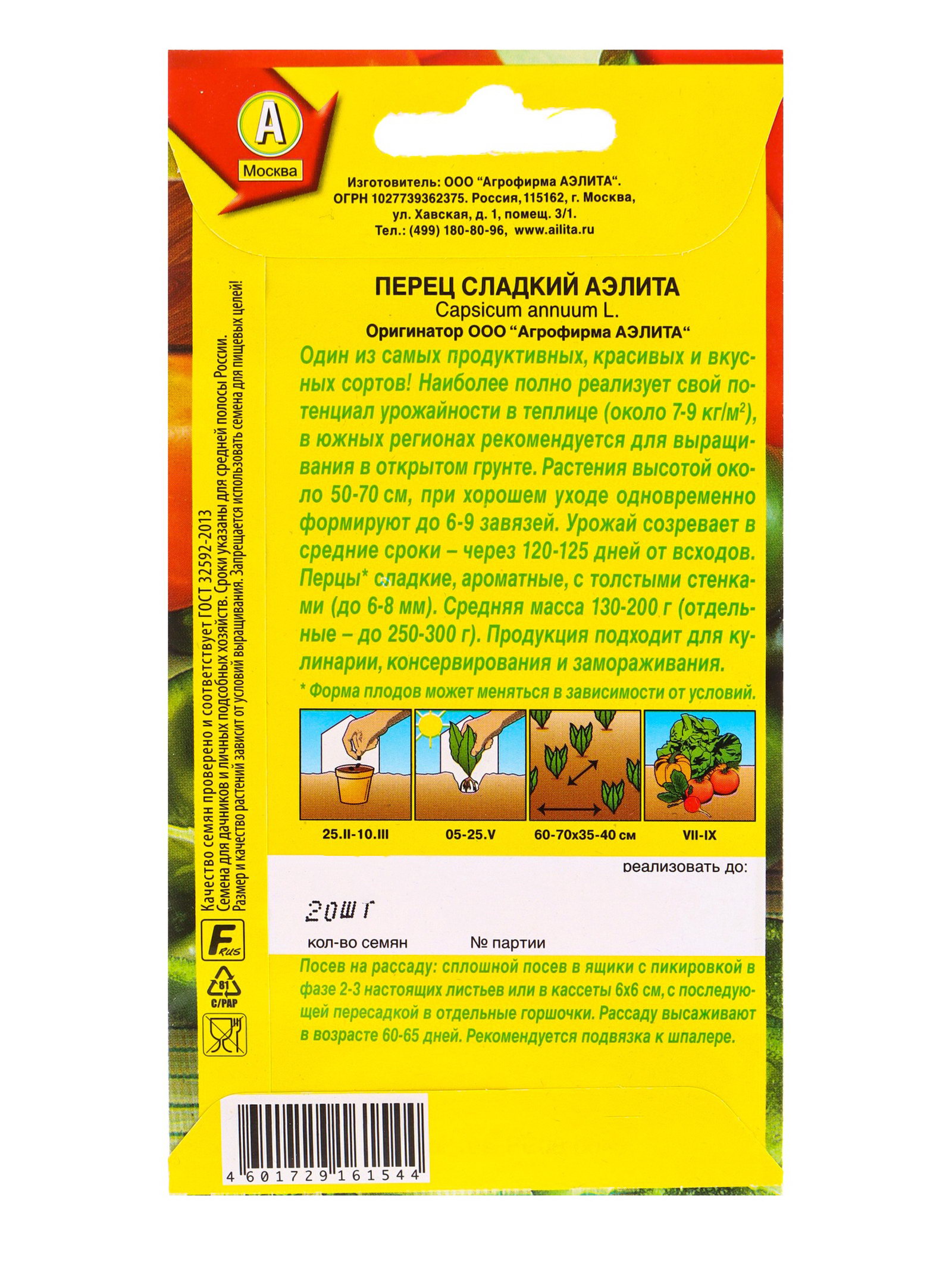 Семена Перец сладкий "Аэлита", 20 шт., Агрофирма АЭЛИТА, Китай