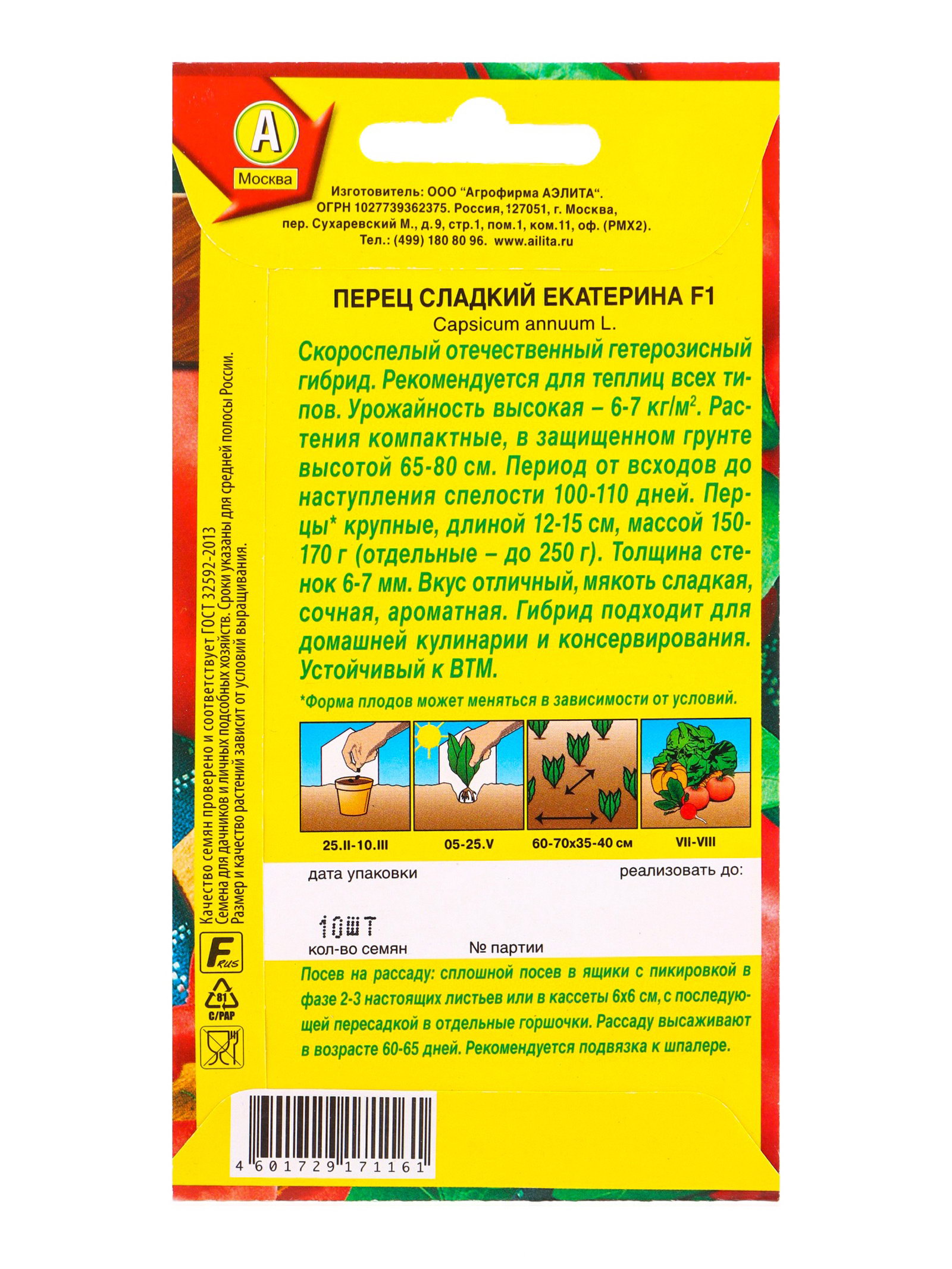 Семена Перец сладкий Екатерина F1, Ц/П,10 шт., Агрофирма АЭЛИТА, Китай