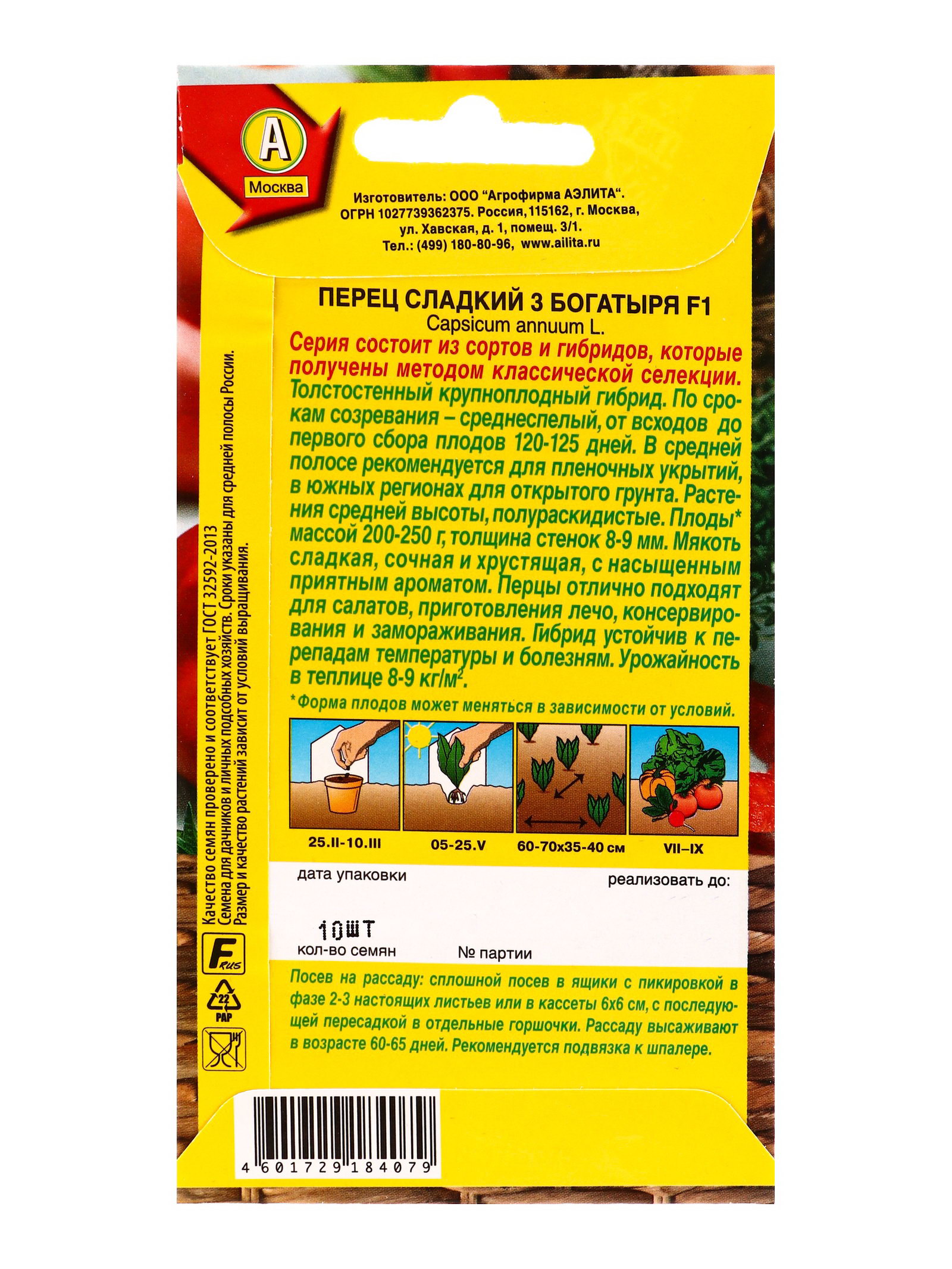 Семена Перец сладкий 3 богатыря F1 Профи-Аэлита, Ц/П,10 шт., Агрофирма АЭЛИТА, Китай