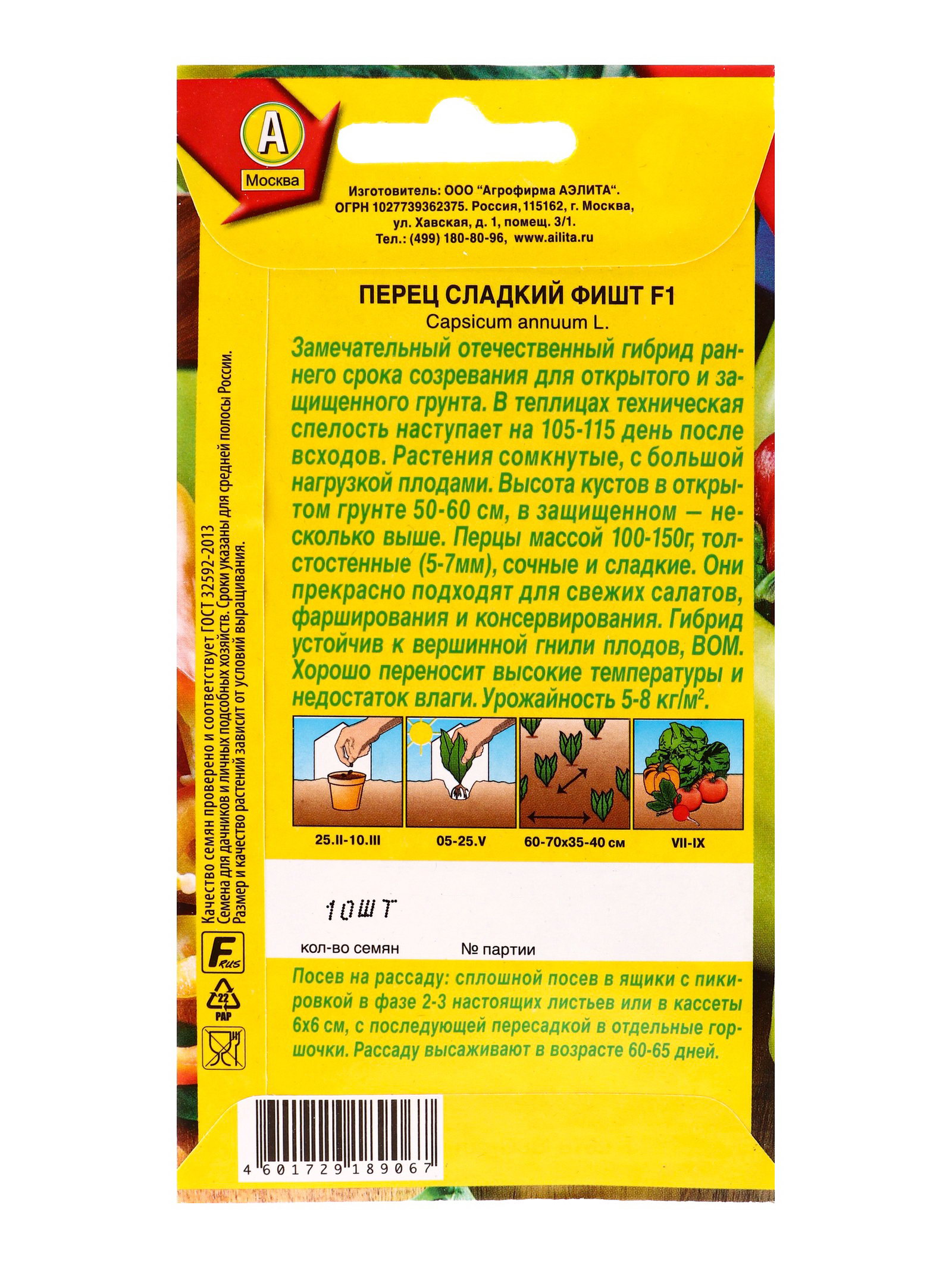 Семена Перец сладкий Фишт F1, Ц/П,10 шт., Агрофирма АЭЛИТА, Россия