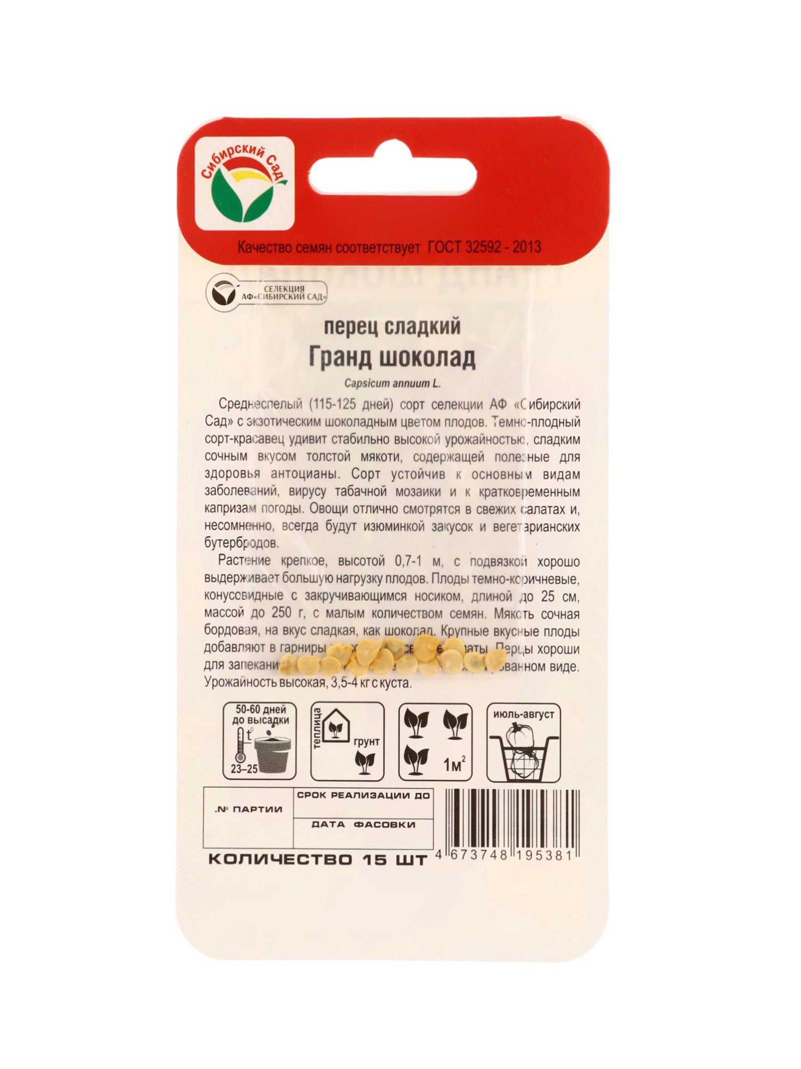 Семена Перец ГРАНД ШОКОЛАД 15шт, Сибирский сад, Россия