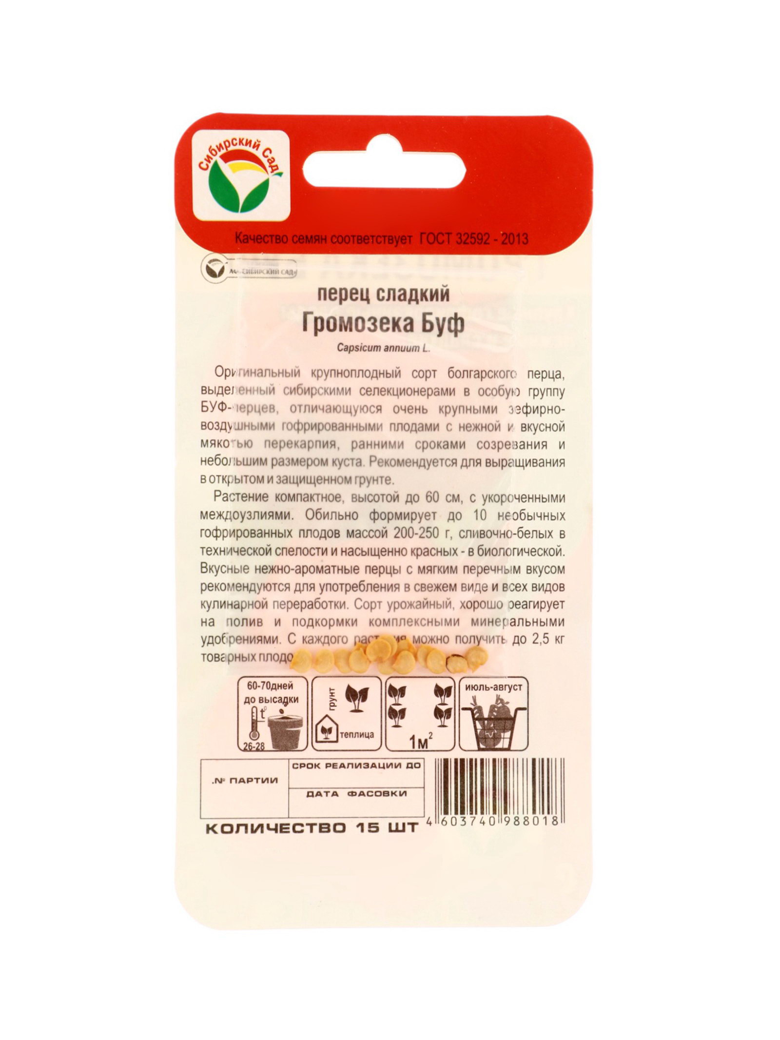 Семена Перец ГРОМОЗЕКА БУФ 15шт, Сибирский сад, Россия