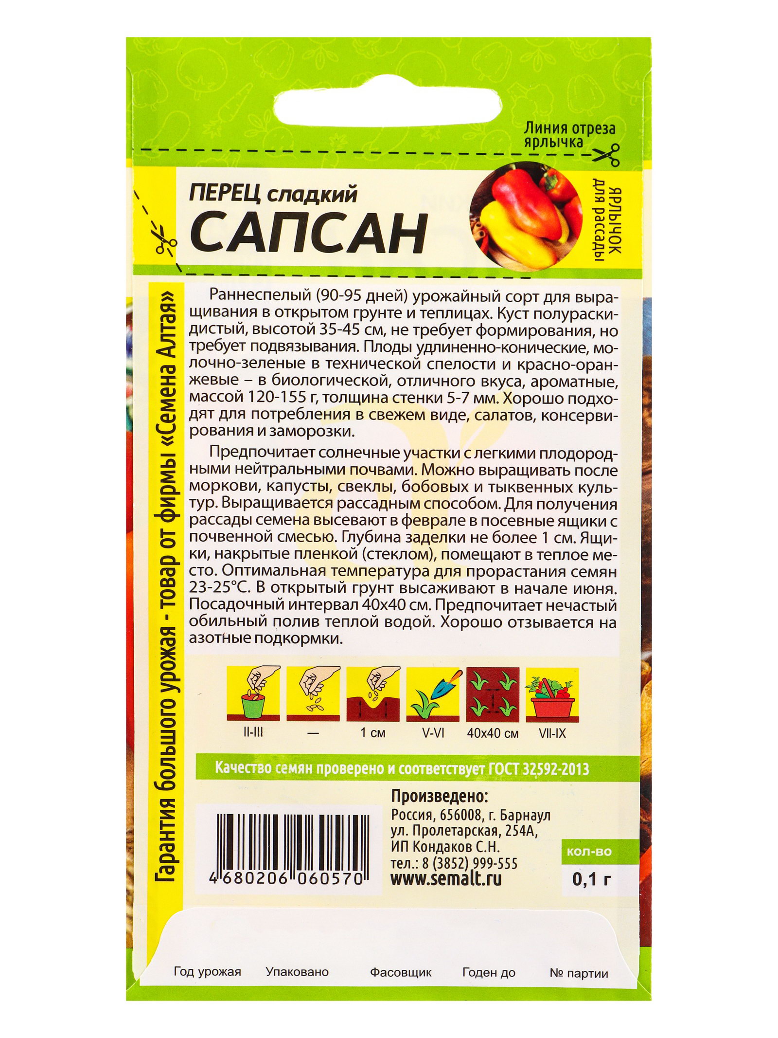 Семена Перец "Сапсан", 0.1 г, Семена Алтая, Россия