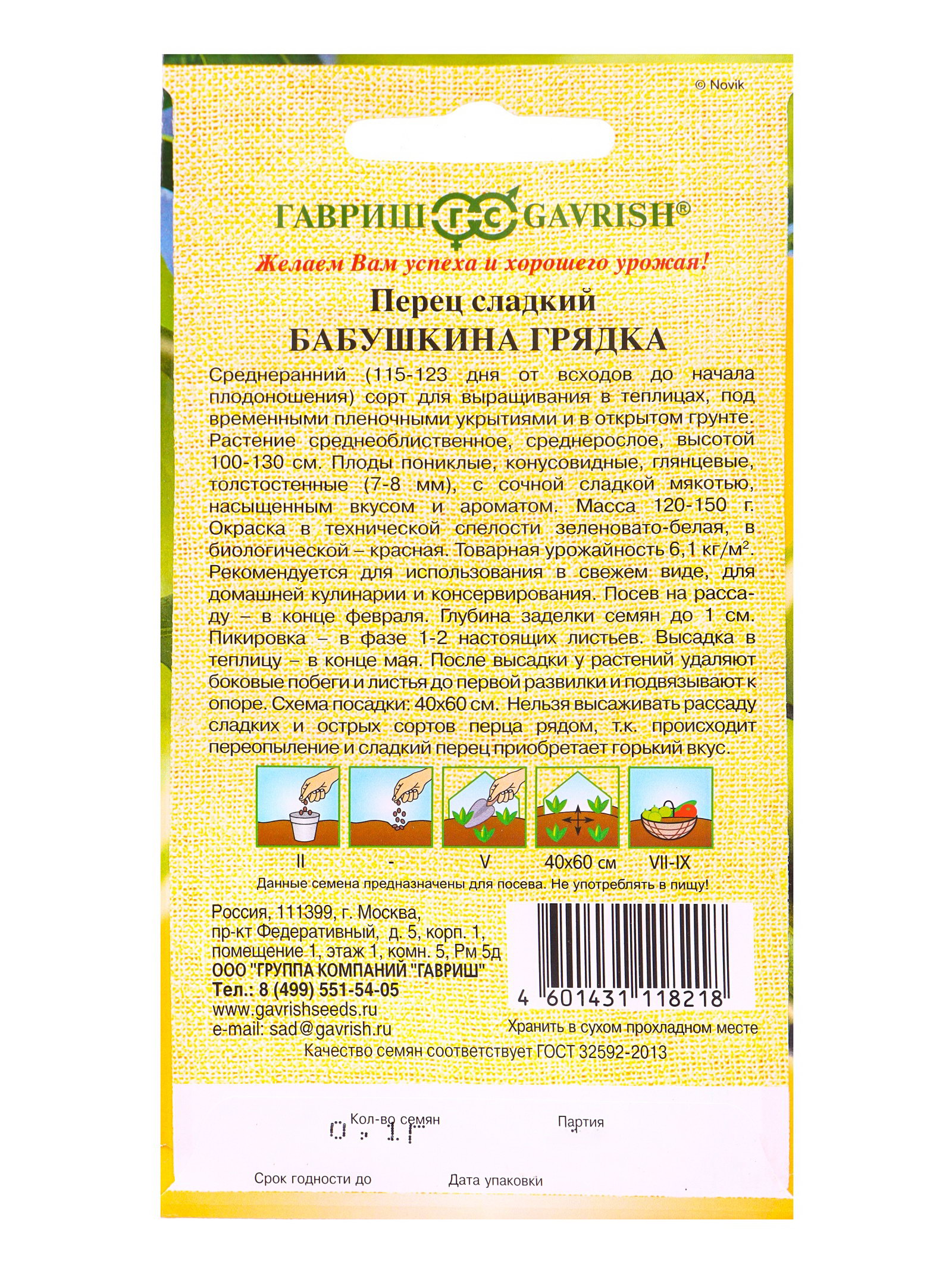 Семена Перец Бабушкина грядка 0.1 г автор., Гавриш, Россия