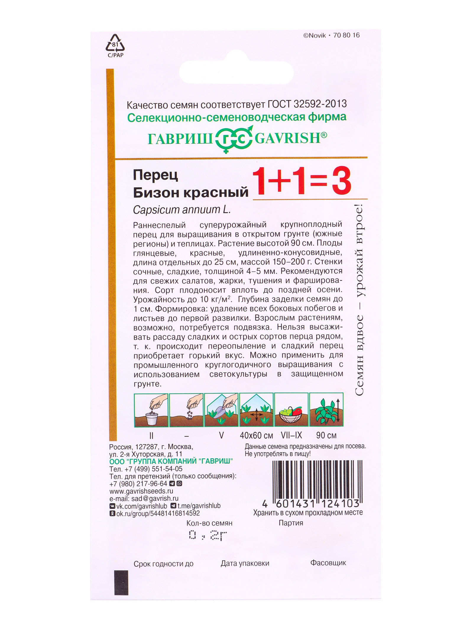 Семена Перец Бизон красный серия 1+1/0.2 г автор., Гавриш, Россия