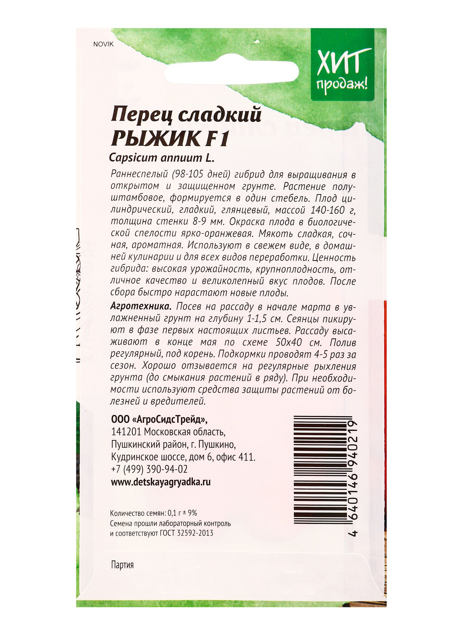 Семена Перец Рыжик 0.1 г, Агросидстрейд, Россия