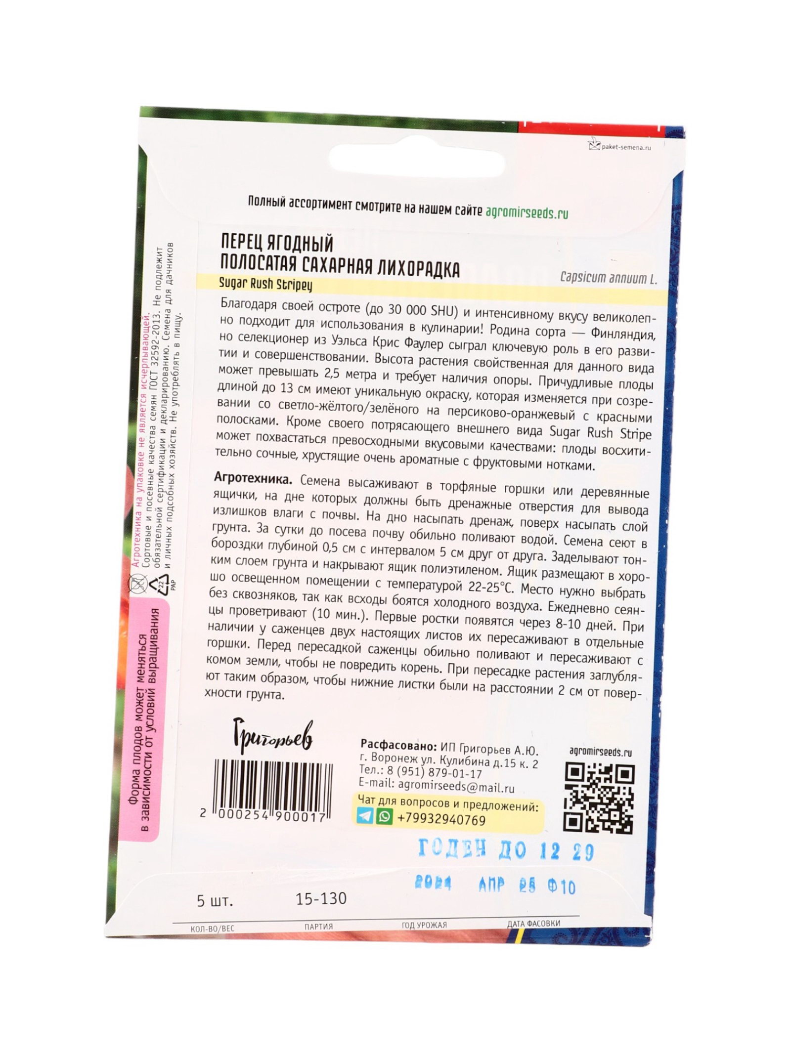 Семена Перец ягодный Полосатая Сахарная Лихорадка, Григорьев, Россия