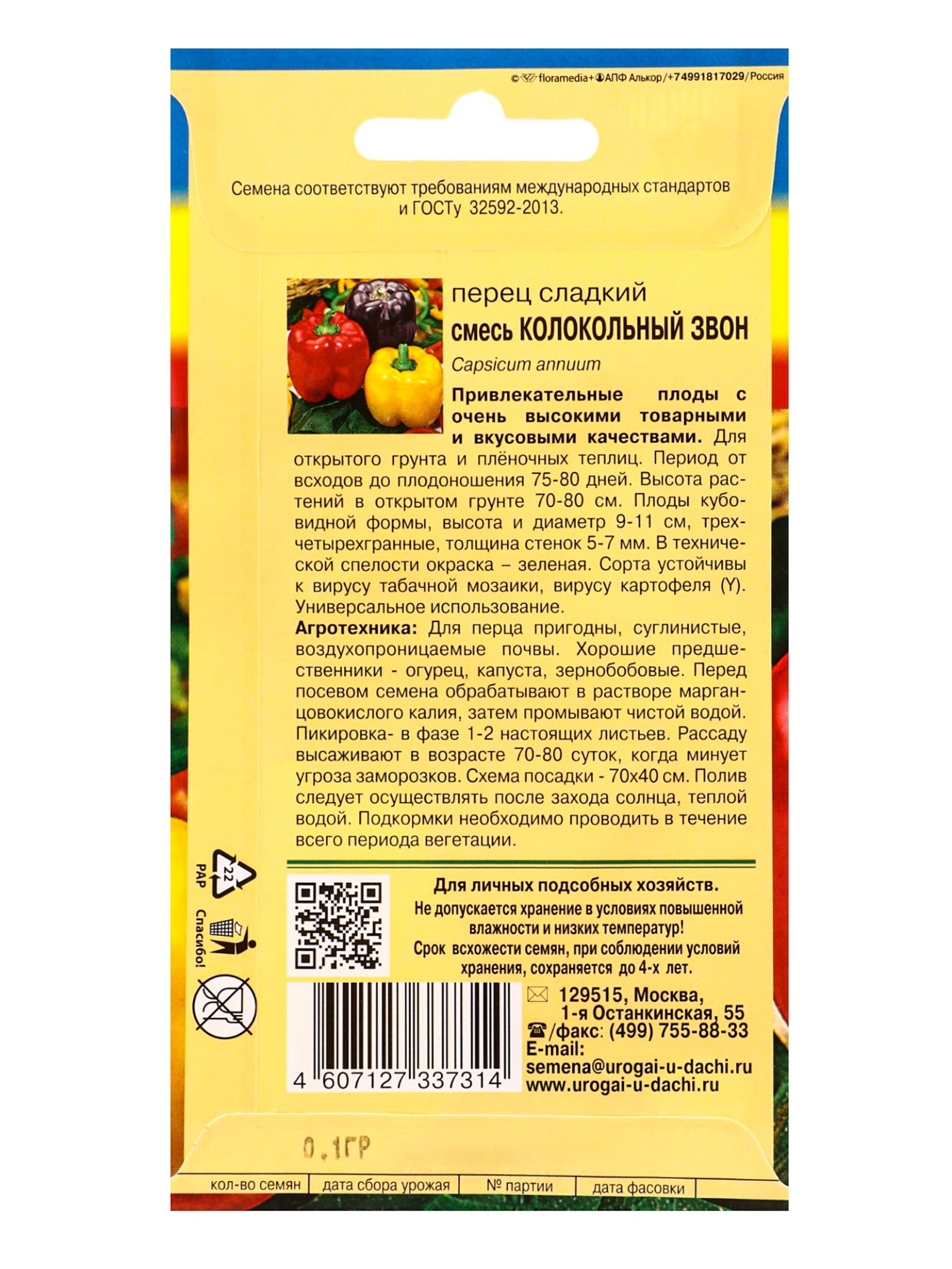 Семена Перец СМЕСЬ КОЛОКОЛЬНЫЙ ЗВОН 0.1 гр, УРОЖАЙ УДАЧИ, Россия