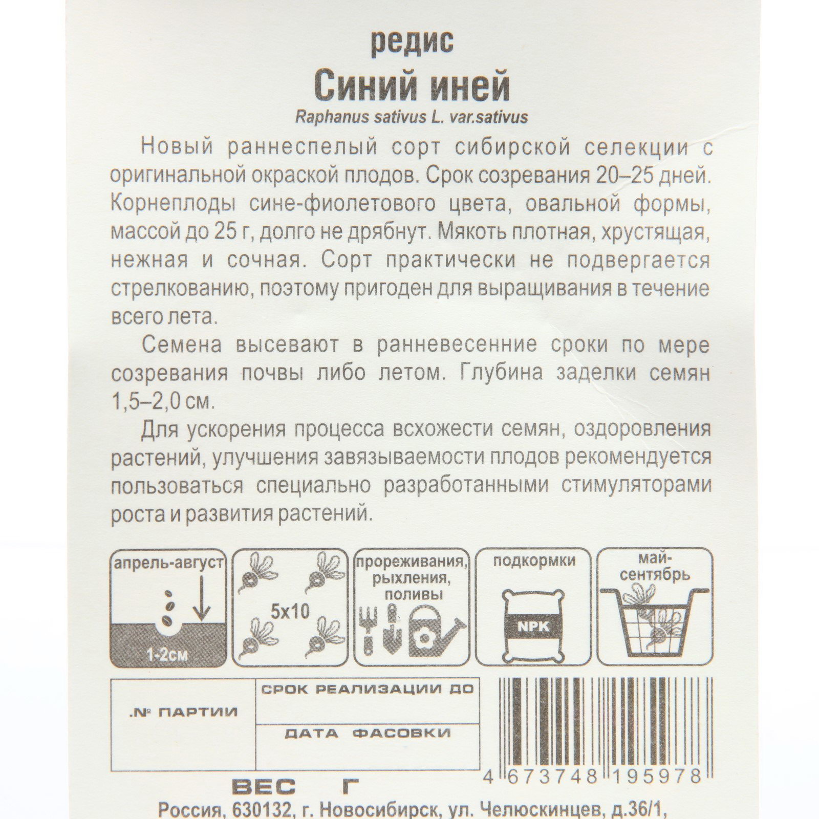 Семена Редис Синий иней, 2 г, Сибирский сад, Россия