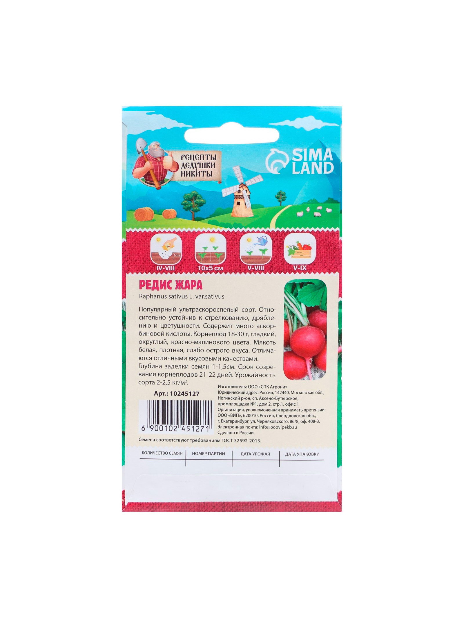 Семена Редис "Жара", 2 г, Рецепты дедушки Никиты, Россия