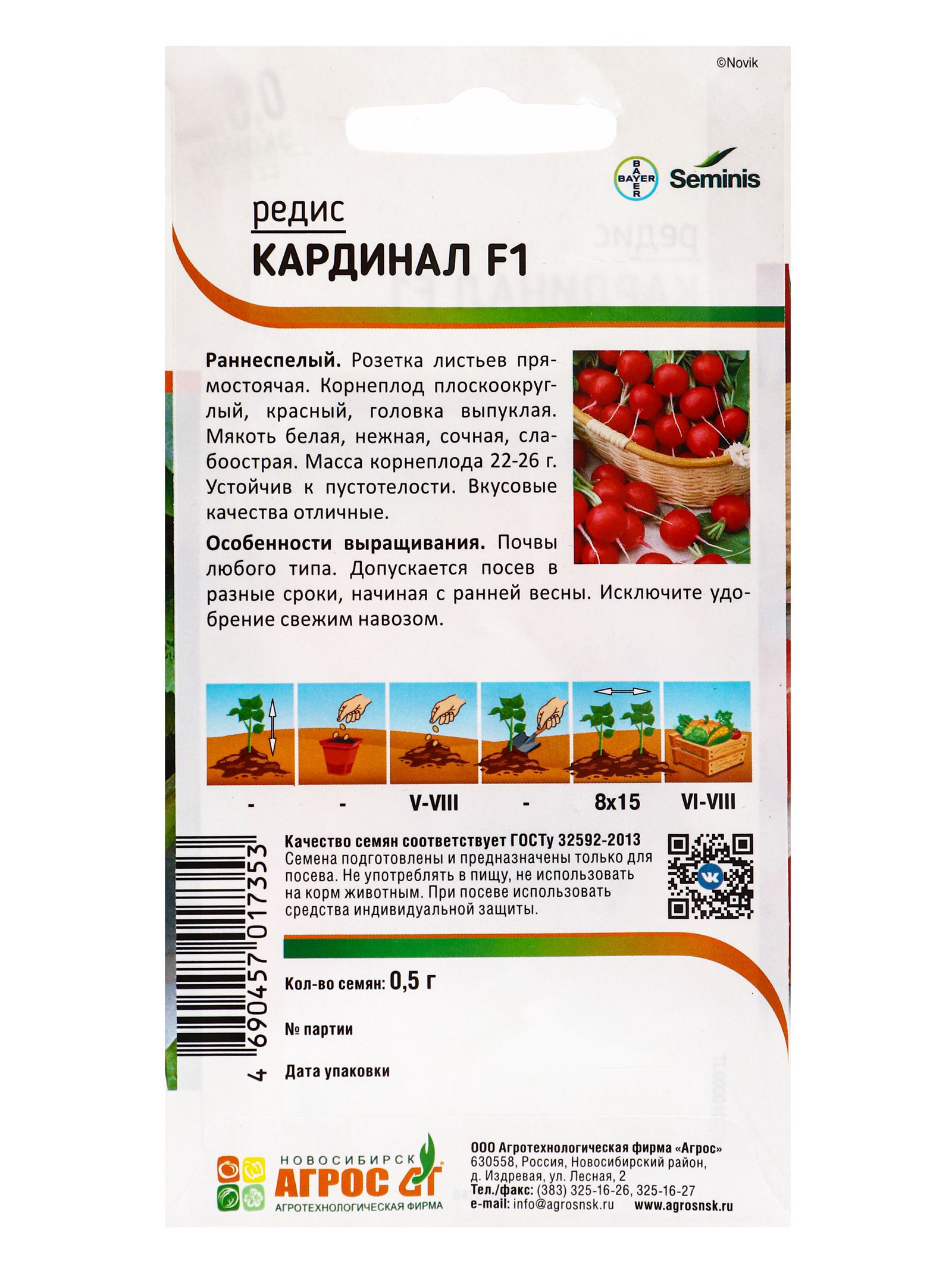 Семена Редис "Кардинал", F1, 0.5 г, "Агрос", Агросс, Италия