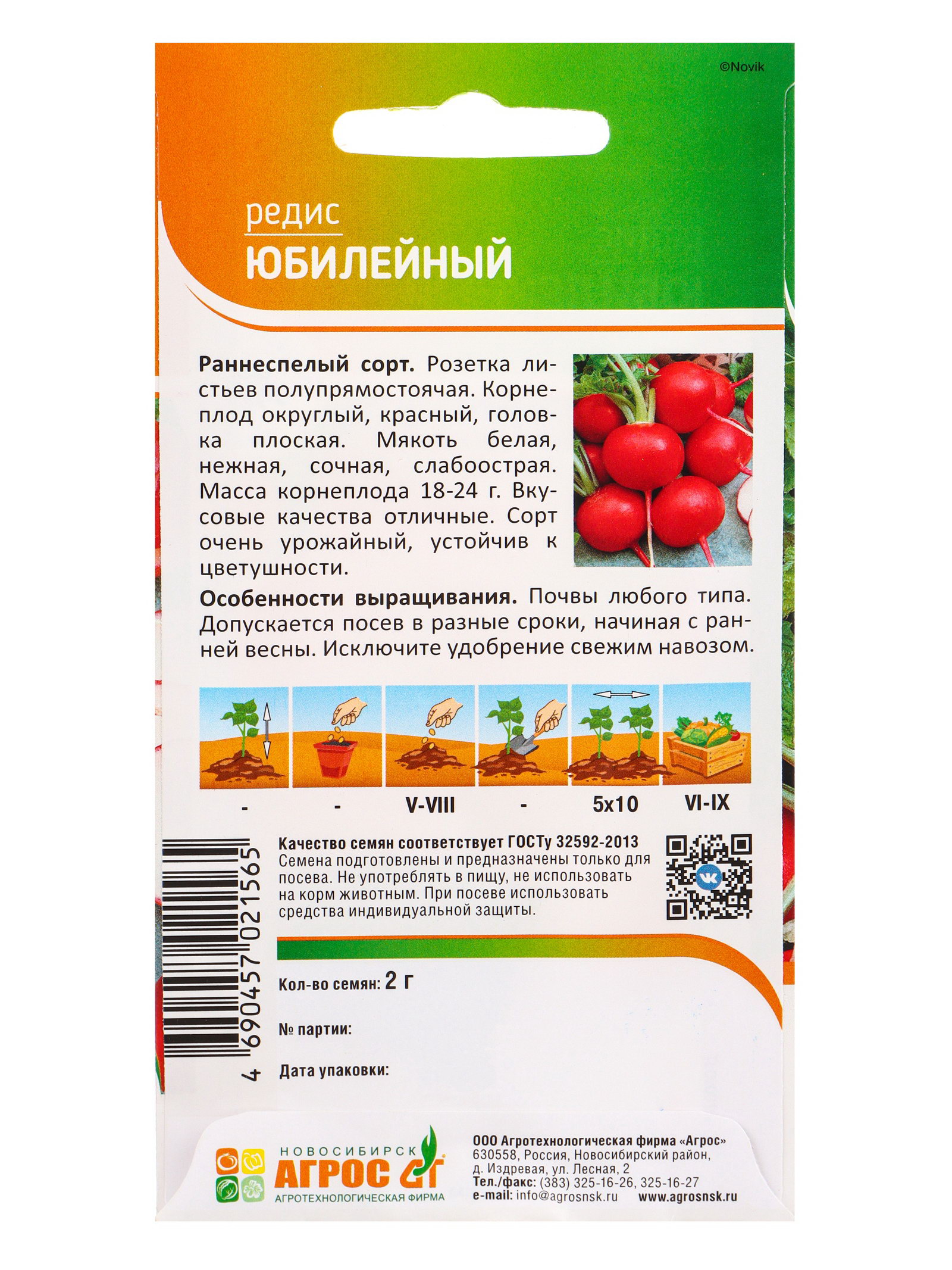 Семена Редис "Юбилейный" 2 г, Агросс, Россия