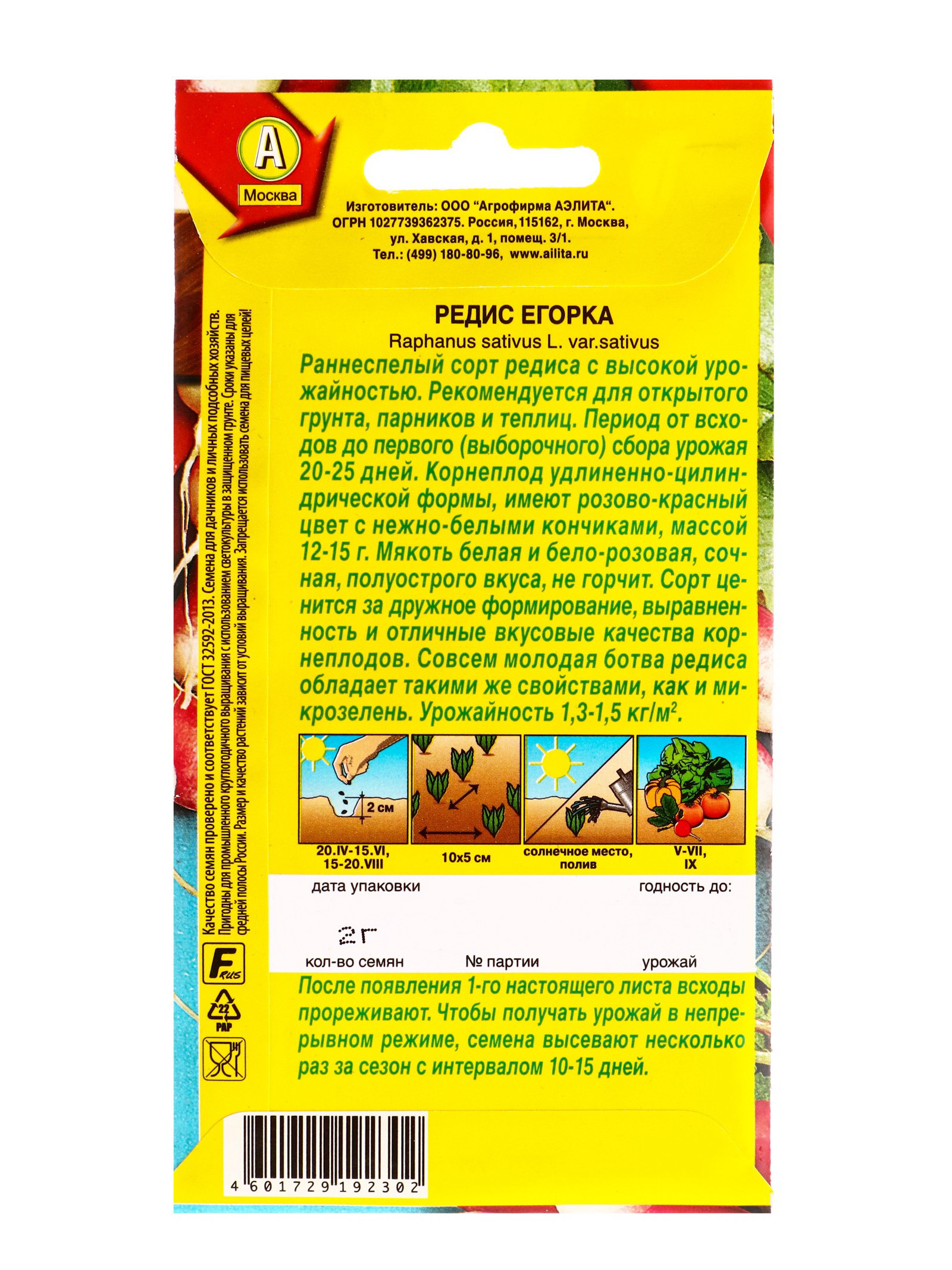 Семена Редис Егорка, Ц/П,2 г, Агрофирма АЭЛИТА, Россия