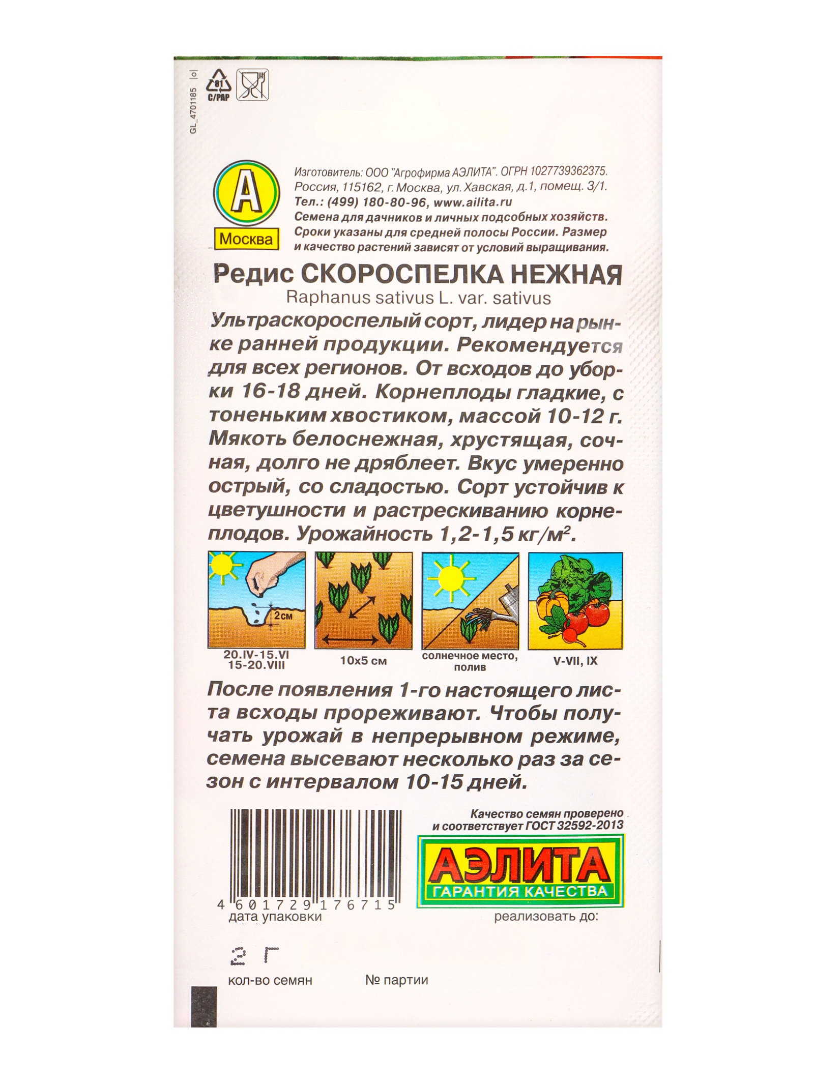 Семена Редис Скороспелка нежная, Ц/П,4 г, Агрофирма АЭЛИТА, Россия