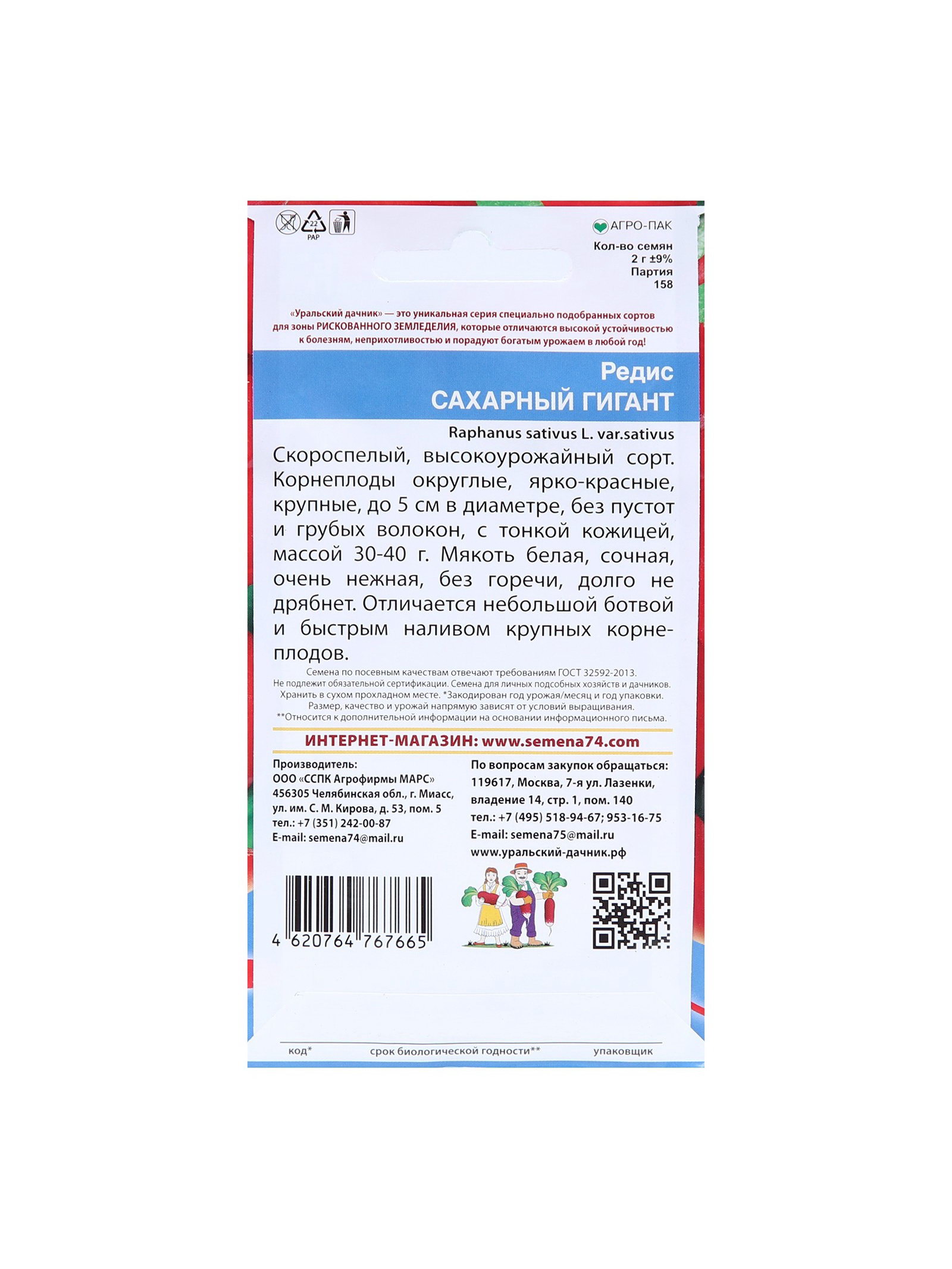 Набор семян Редис "Сахарный Гигант", 5 шт., 9x17x1 см., Мой выбор, Россия