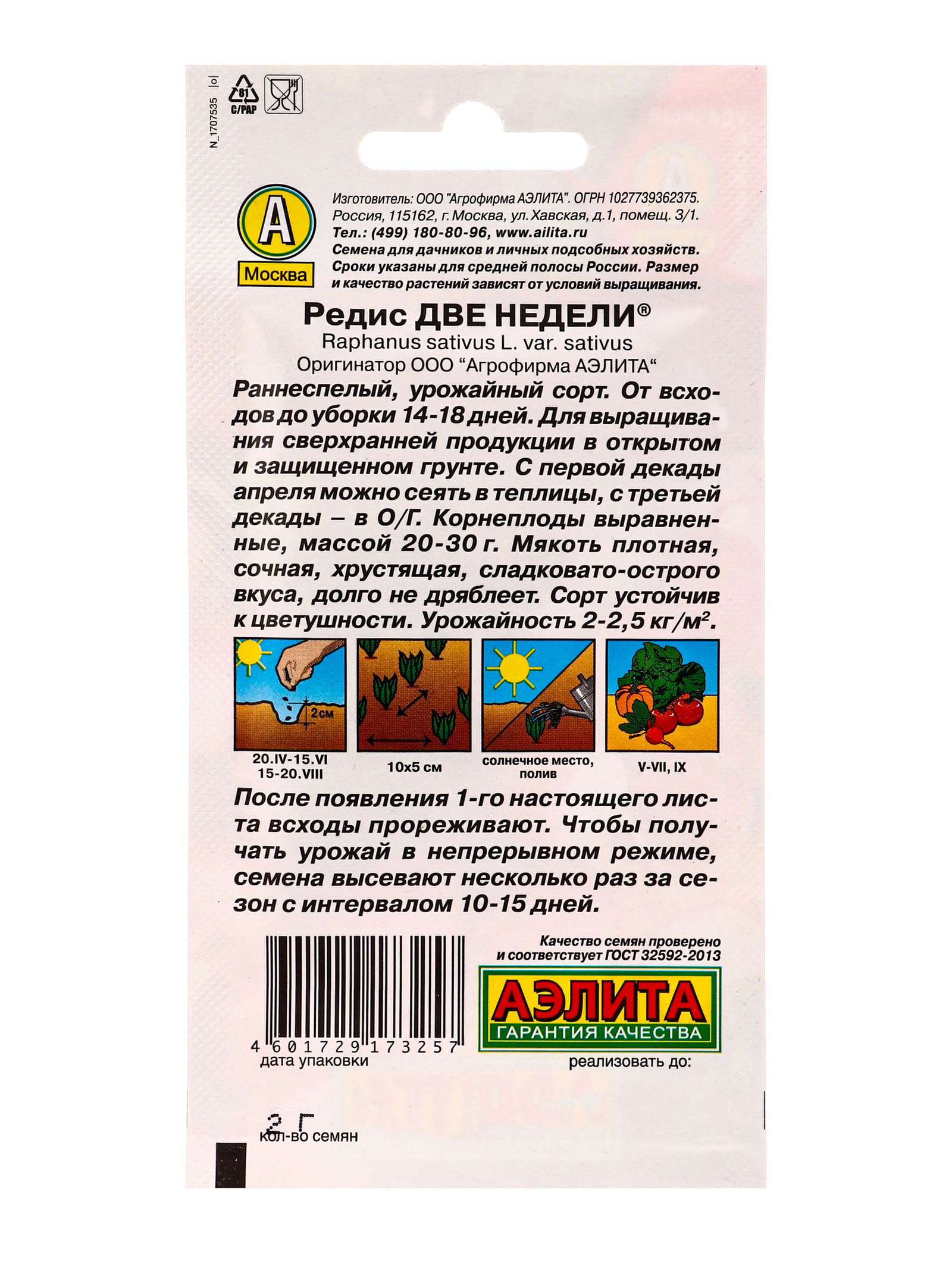 Семена Редис "Две недели", 2 г, Агрофирма АЭЛИТА, Польша