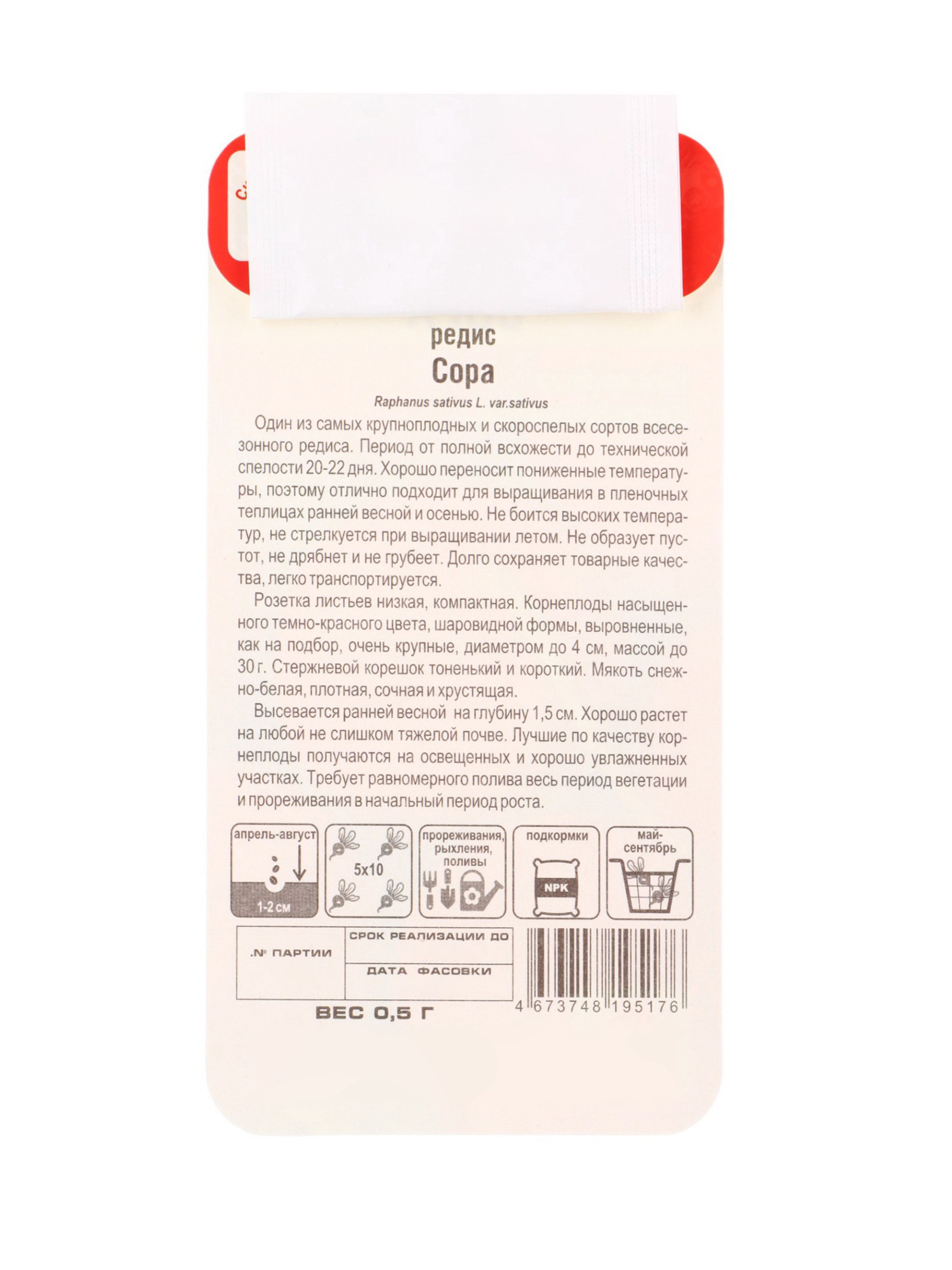 Семена Редис Сора 0.5г, Сибирский сад, Россия