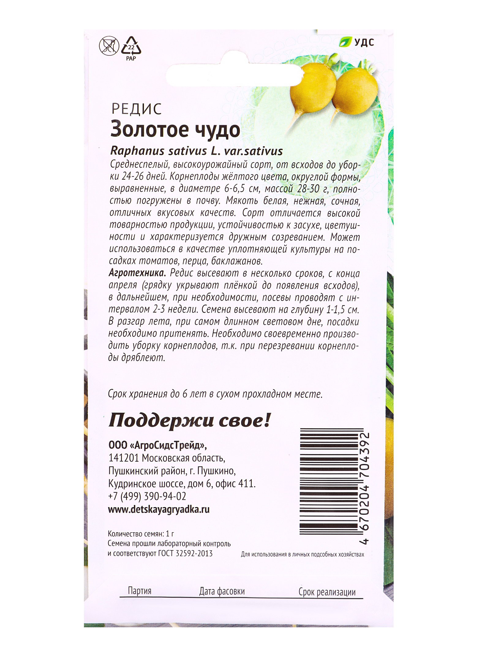 Семена Редис Золотое чудо 1 г, Агросидстрейд, Россия