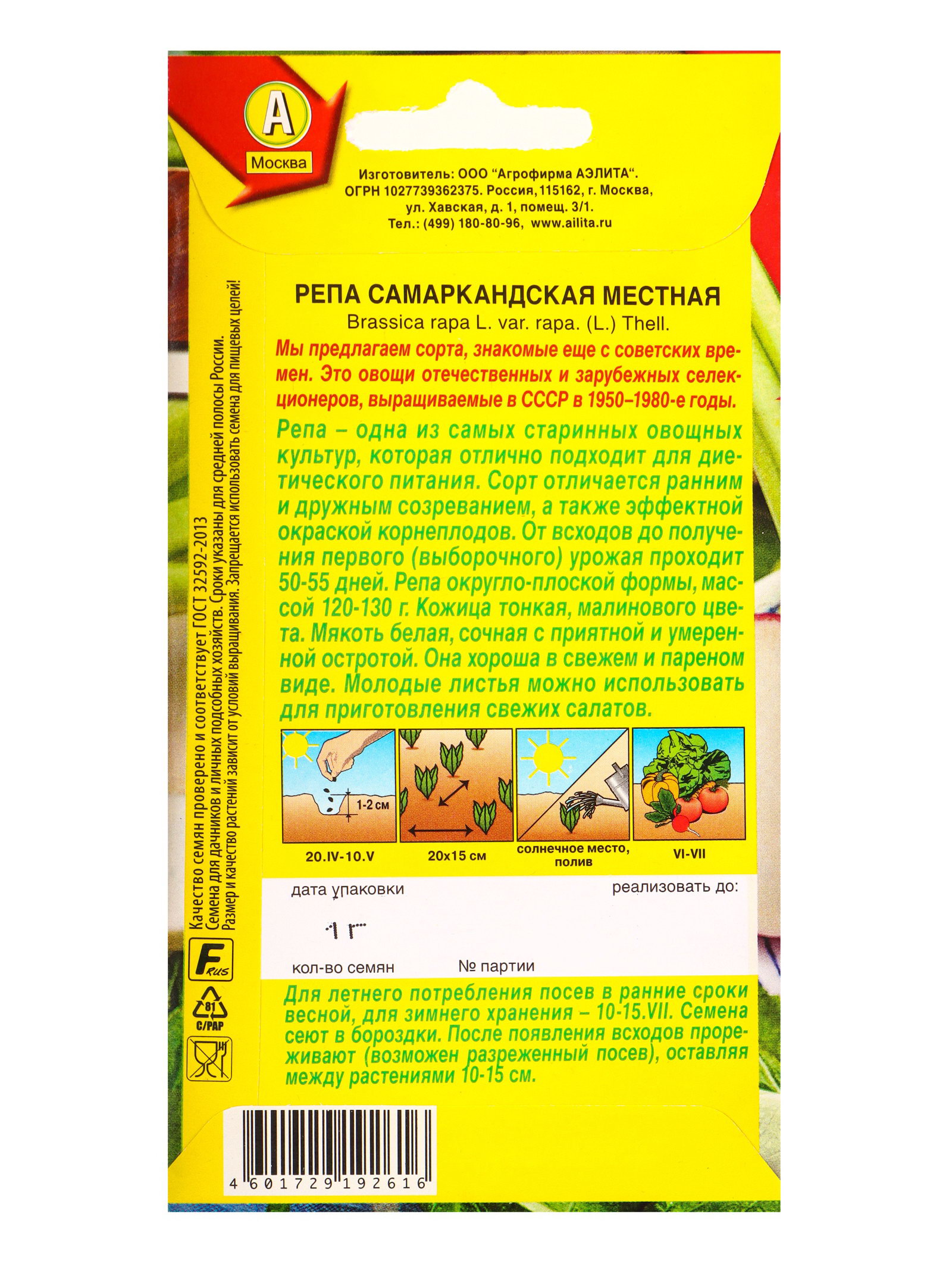 Семена Репа Самаркандская местная Сделано в СССР, Ц/П,1 г, Агрофирма АЭЛИТА, Россия