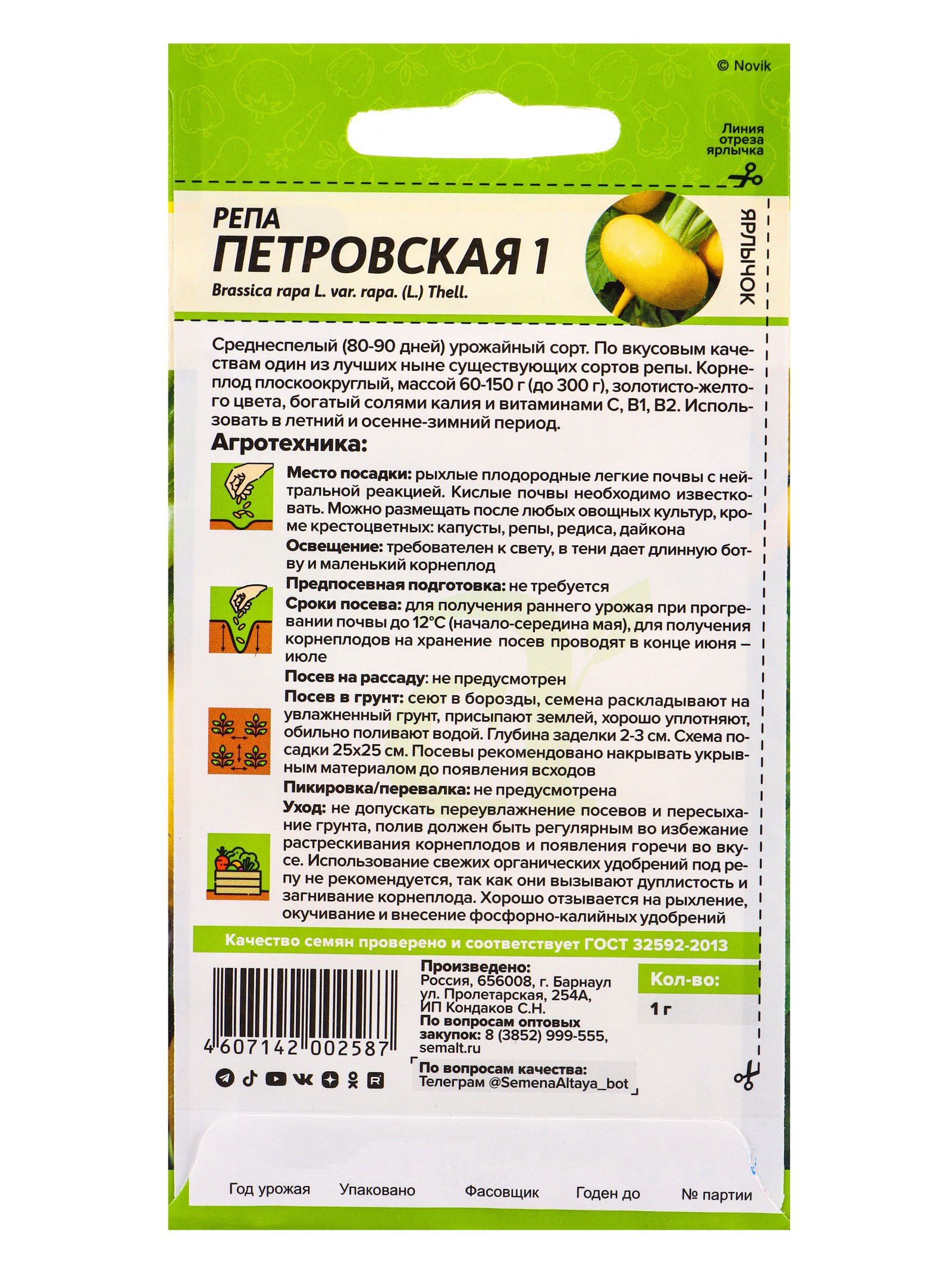 Семена Репа "Петровская 1", 1 г, Семена Алтая, Россия