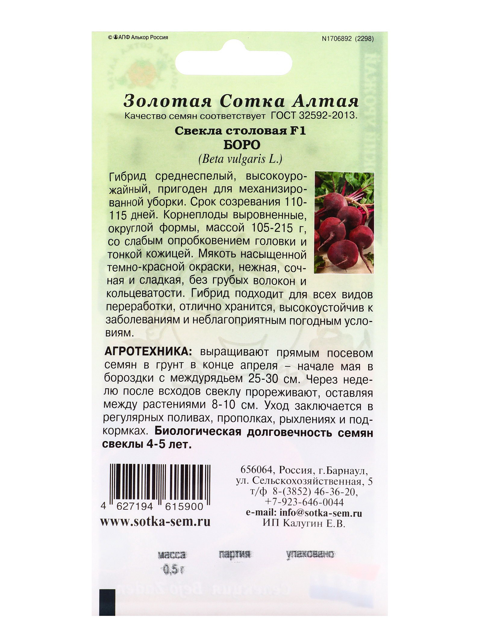 Семена Свекла "Боро", F1, 0.5 г, среднеспелая, Золотая Сотка Алтая, Россия