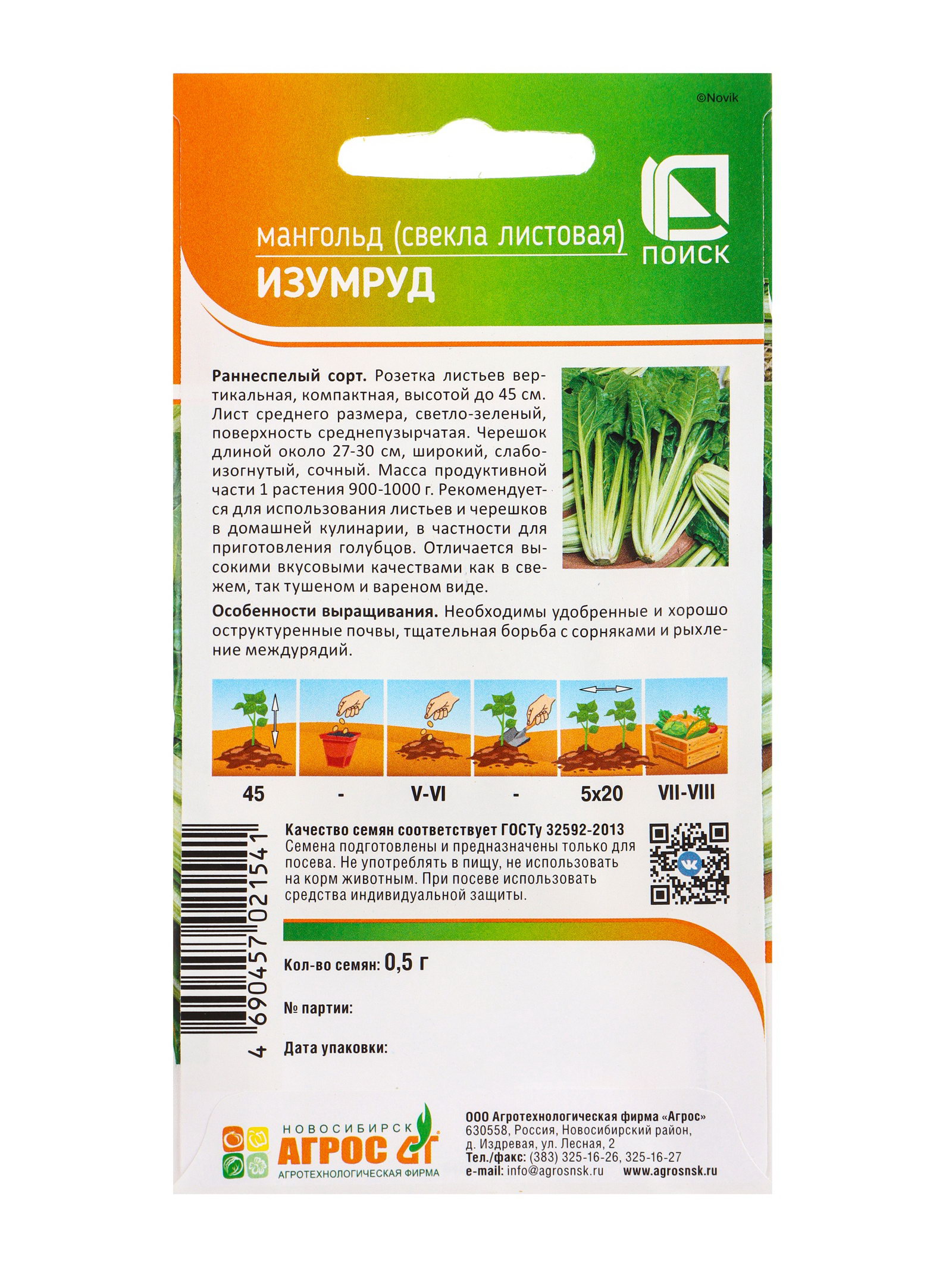 Семена Свекла "Мангольд Изумруд" 0.5 г, Агросс, Россия