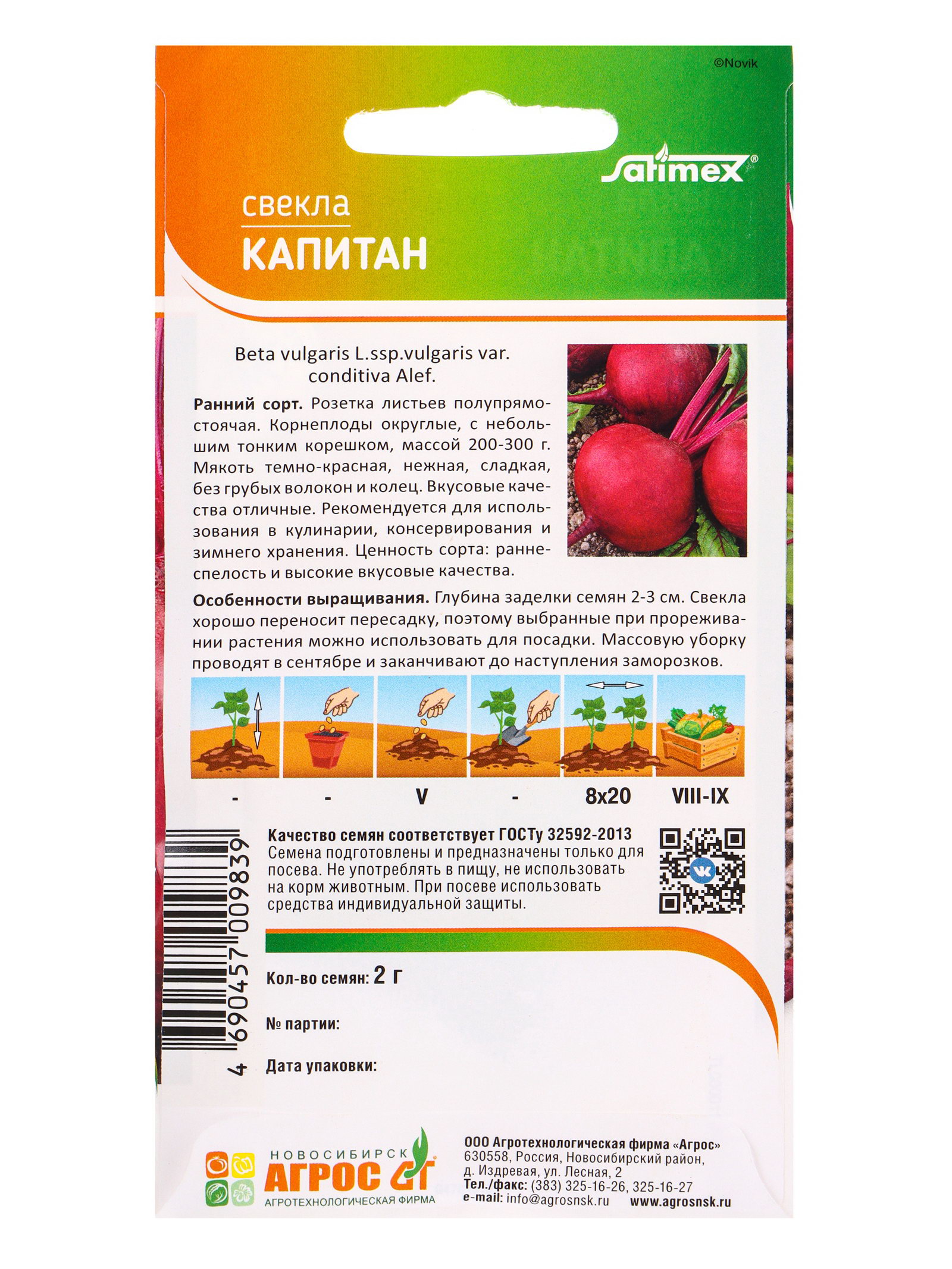 Семена Свекла "Капитан" 2 г, Агросс, Россия