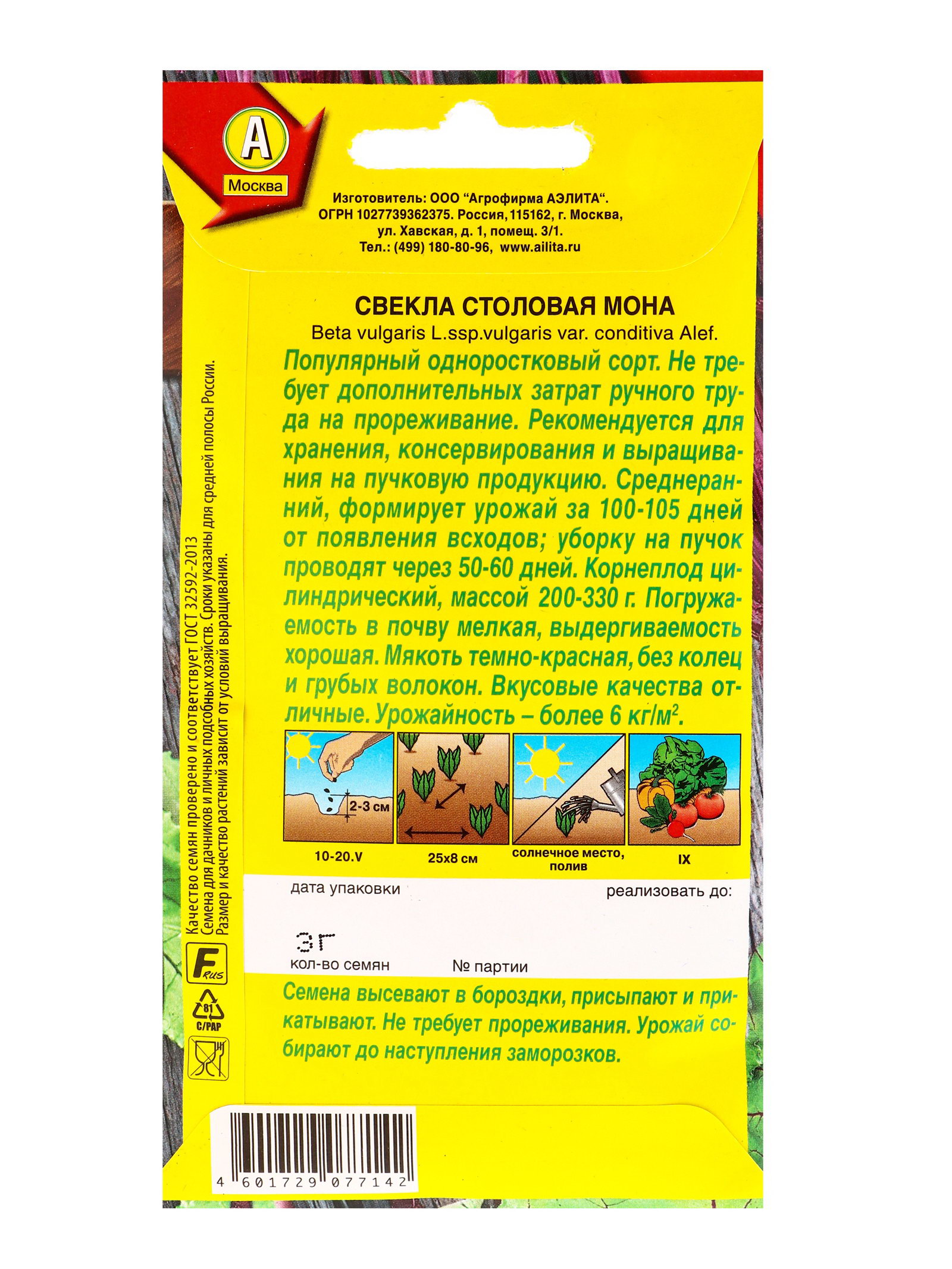 Семена Свекла столовая "Мона", 3 г, Агрофирма АЭЛИТА, Франция