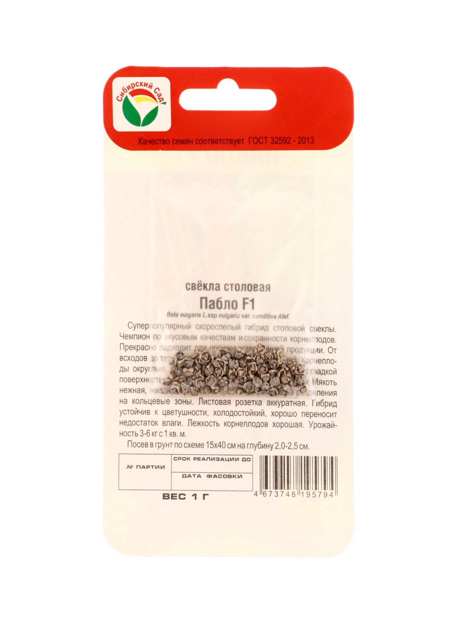 Семена Свекла Пабло F1 1г, Сибирский сад, Россия