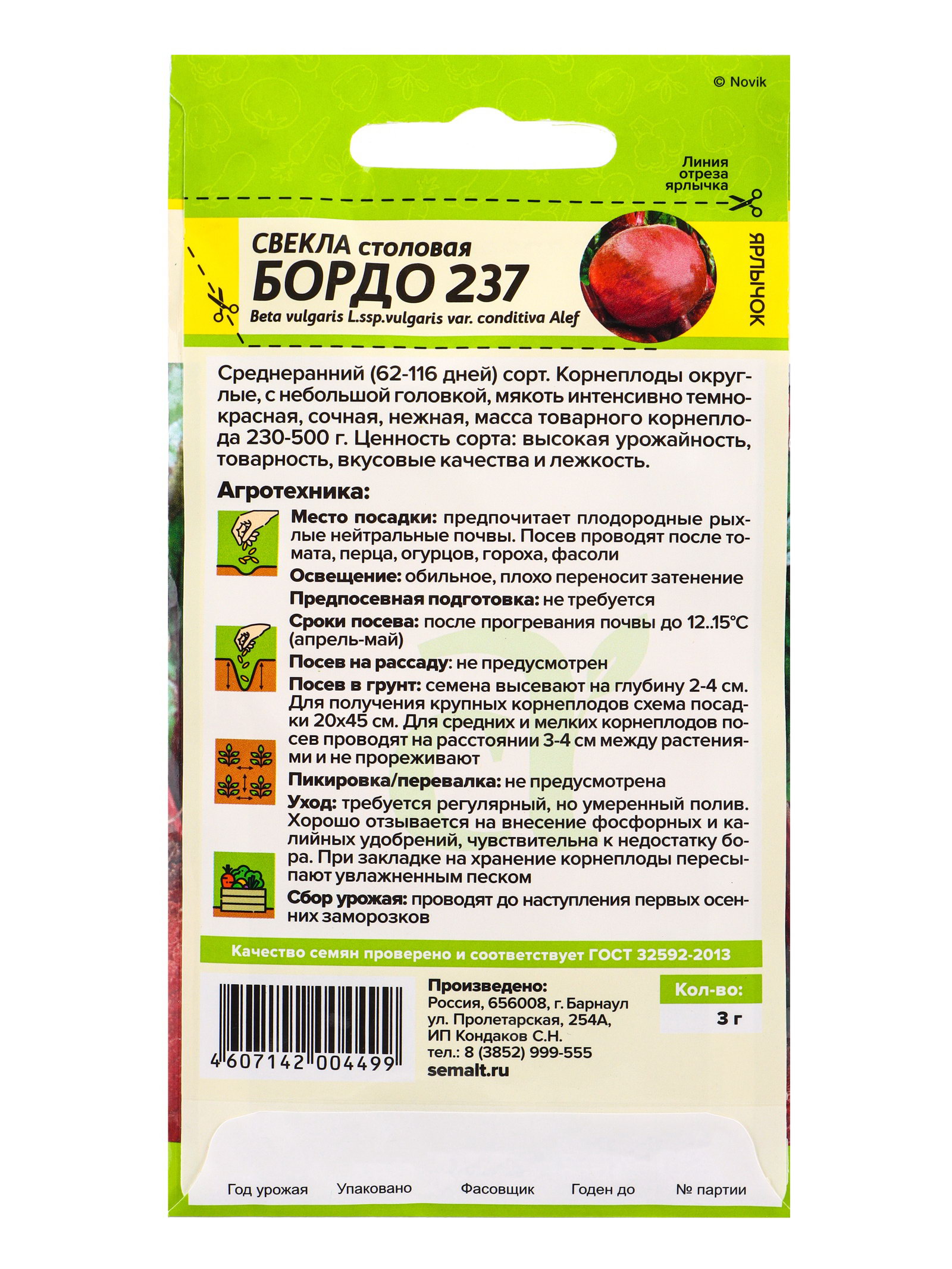 Семена Свёкла "Бордо 237", 3 г, Семена Алтая, Россия