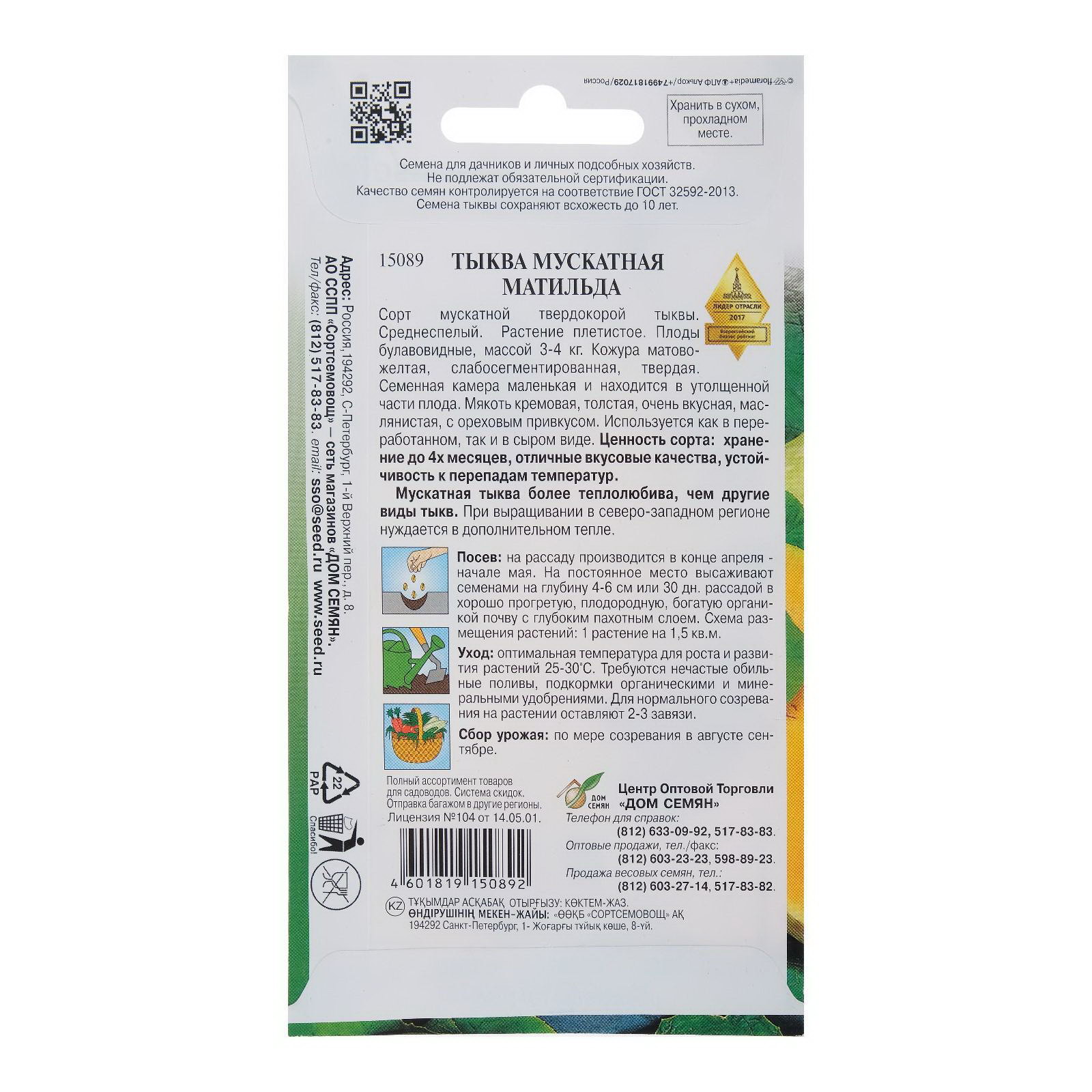 Семена Тыква мускатная "Матильда" select, 10 шт, 8x15x0.3 см., Дом семян, Россия
