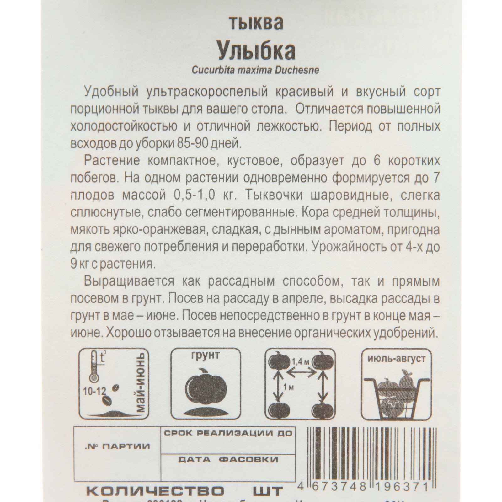 Семена Тыква "Улыбка", 5 шт, Сибирский сад, Россия